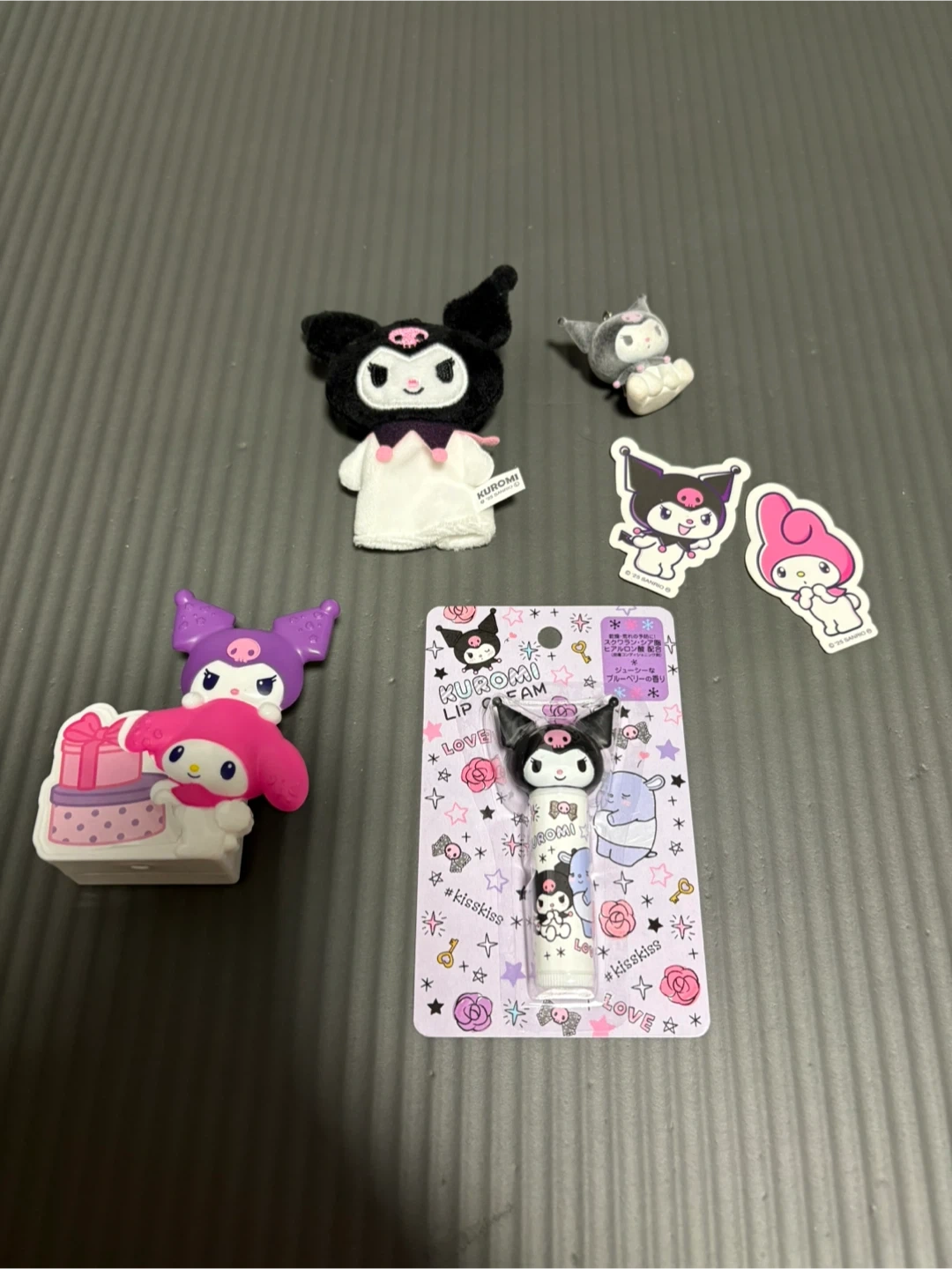 マイメロクロミのグッズまとめです。 ・ぬいぐるみ、リップクリーム、ステッカーなど ご不明点があればお気軽にお尋ねください。