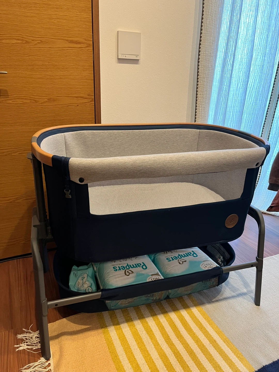 マキシコシの折りたたみベビーベッドです ・ブランド:マキシコシ ・色:ネイビー、グレー、木目調 ・状態:本体も使用感少なめ、キャリーバッグにキズあり サイズ 約W66×L98×H91cm ご不明点があればお気軽にご連絡ください