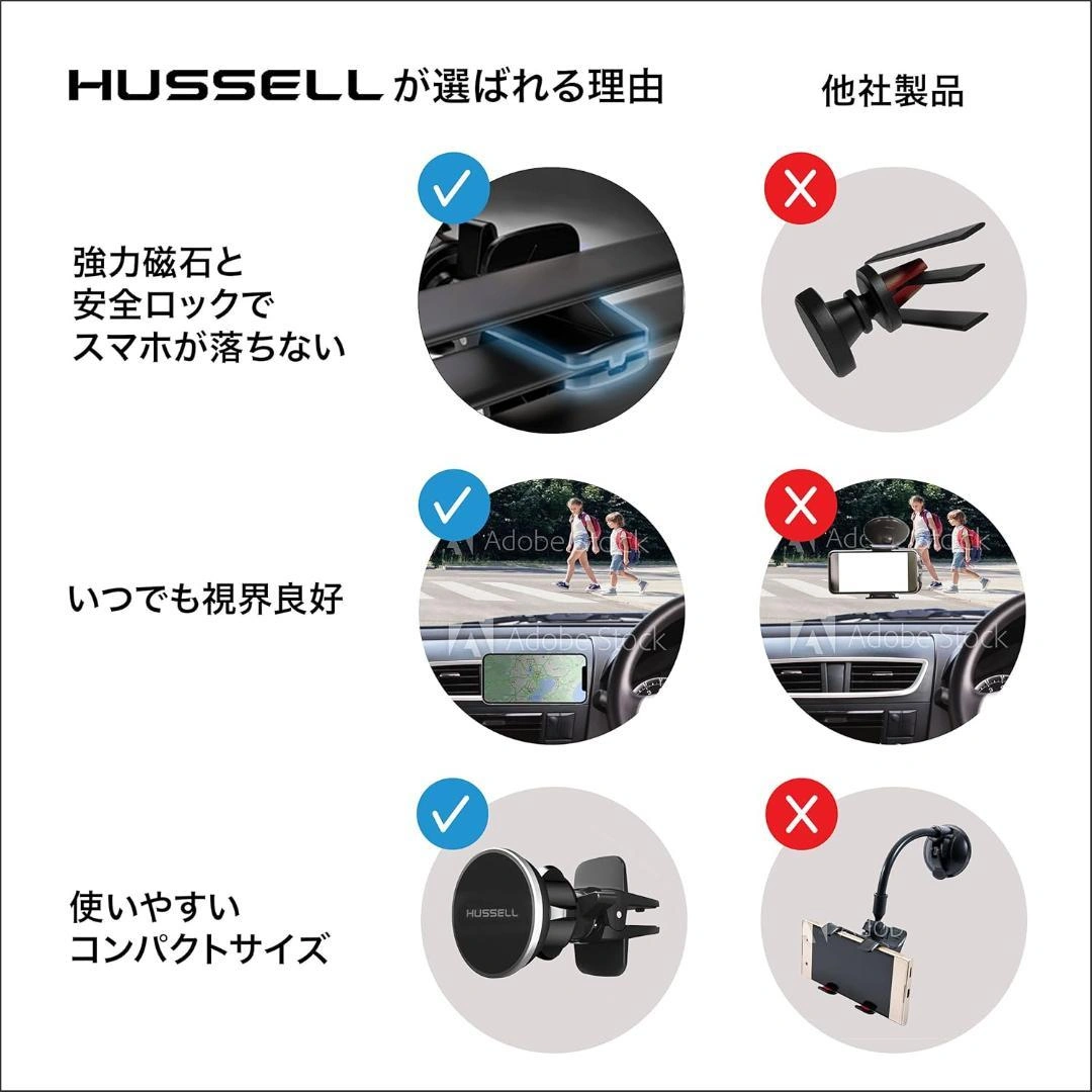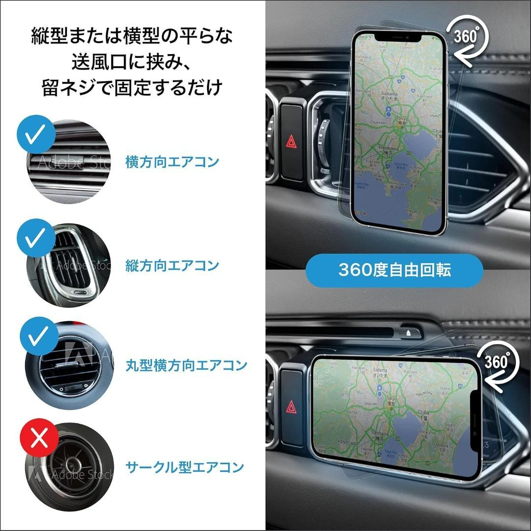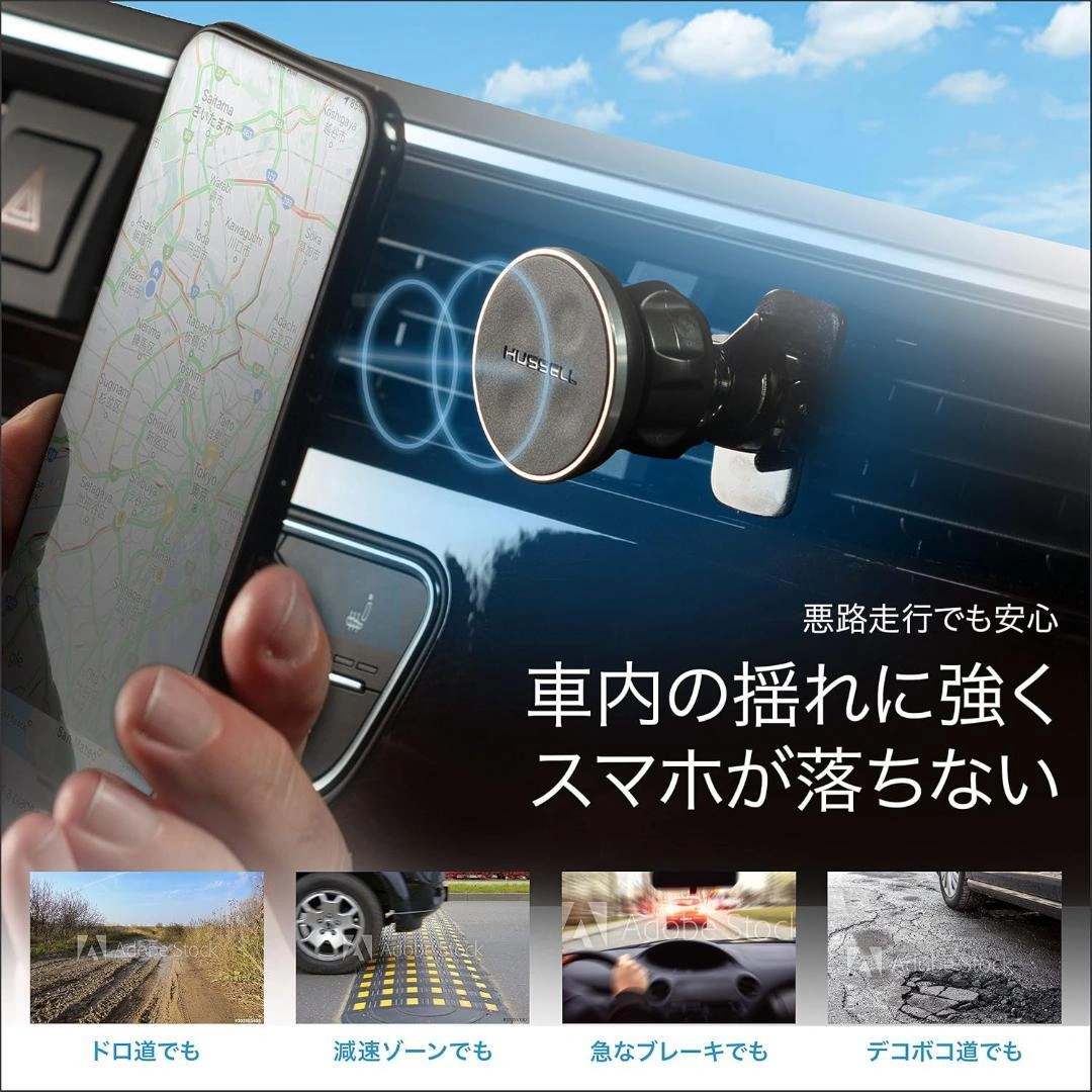 マグネット式スマホ車載ホルダー 簡単装着 しっかり固定