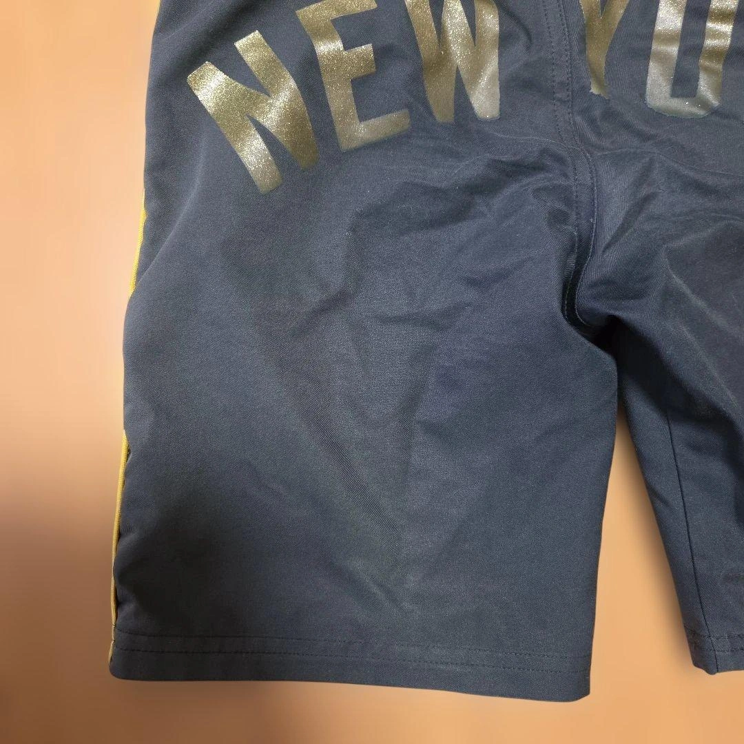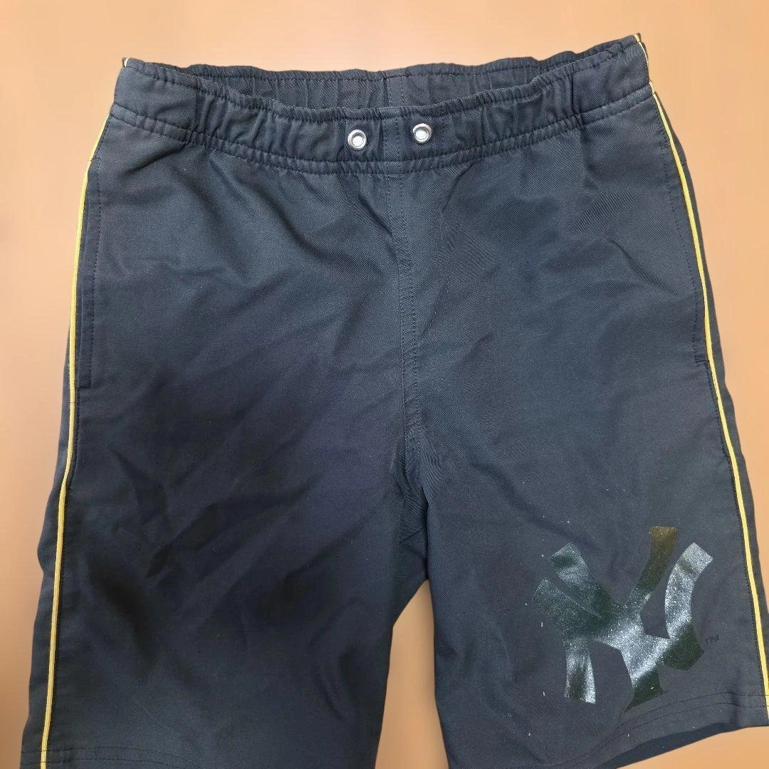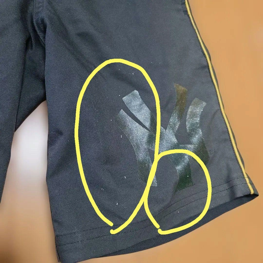 ニューヨーク・ヤンキースのロゴが特徴の黒いハーフパンツです。 数回着用してサイズアウトしたため、出品します(*^-^) 【サイズ:130】 ※左前太もも部分に絵の具がはねた痕があります(写真5) ※所々小さな色褪せがあります ※その他目立つ汚れや破れ・ほつれはありません 【注意】 ・子供が着用した中古品です ・写真をよくご覧になりご検討くださいm(_ _)m ・自宅保管、素人検品のため、見落としがある可能性があります ・気になる箇所ありましたら購入前にコメント下さい ・中古品にご理解いただける方は是非ご検討ください(*^-^) 色: 黒 デザイン: ニューヨーク・ヤンキースロゴ入り ストライプ: 黄色のサイドストライプ ウエスト: ゴムウエスト ご覧いただきありがとうございます。 ご希望の方はお気軽にご連絡ください。