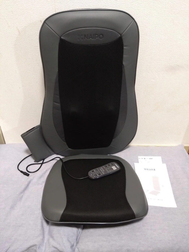 昨年(2024)の5月に購入 したばかり マッサージシートです。 2回程使用しましたが、 その後すぐに別のマッサージ用品を 購入しましたので、ほぼ未使用状態です。 商品状態:2回程使用、室内保管 ブランド:naipo 素材:表皮は合成皮とベロア系布 サイズ:全体長約105㎝×幅約40㎝×高さ約10㎝ 背もたれ長約 65cm×座面長約40cm 椅子の上に置いて使用しますが、 背もたれ長が、約65cmなので、 使用する椅子の背もたれの長さを よく確認していただいてから 購入検討をして頂ければと思います。 また、充電式ではありませんので、 その辺もご理解頂ければと思います。 マッサージシート本体、取扱説明書、 AC電源、リモコン(本体付け)の 4点セットてお渡し致します。 中古品であるということをご了承の上、 ご購入ください。 また、受渡時に商品のよくご確認頂き ご購入後の返品・クレーム等が無いようにする為に、ご協力戴きたく、宜しくお願い致します。 ご不明点等ございましたらご連絡ください。 マッサージ #マッサージ マッサージシート #マッサージシート 腰痛対策 #腰痛対策