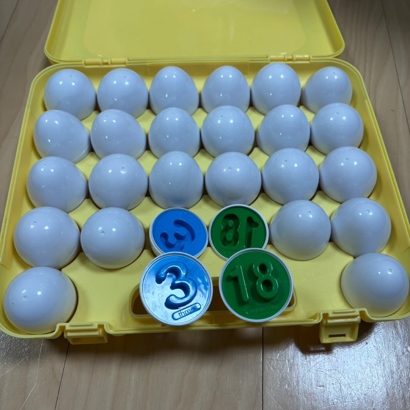色と形を学ぶための知育玩具、26個のマッチングエッグ。モンテッソーリ教育のものです。 - 商品名: マッチングエッグ 26個入り - 特徴: 色と形の認識を促進する知育玩具 - 素材: プラスチック製 - 付属品: 卵ケース付き こどもが夢中で組み合わせていました。 その後数回しか使用しておらず、まだまだ状態が綺麗なのでどなたか使って頂けたら嬉しいです。 以下ネット引用 【数字0-20と計算記号五つのはめ込み卵26点セット】 26点の白い卵を半分を外したら カラフルな数字と計算記号で 色はブラック、レッド、ブルー、黄色、オレンジ等の12種類であります。収納ボックスのサイズは29.5 x 25 x 7センチです。お子様が色と形を合わせたり、数えたり、並べ替えたり遊びできます。 【指先訓練と知力開発の知育おもちゃ】 お子様がが卵をマッチングしながら 手の敏捷性、色認識、細かい運動能力を向上させることができ 色認識と数字計算の学びもでき、集中力と勉強力もアップします。収納ケースは26個の卵をきちんと整理でき、お子様に自分のおもちゃを片付けの習慣を付けます。 目立つダメージは見当たりませんが、あくまで子供が使用した中古品であることにご理解のうえご購入いただけると幸いです。