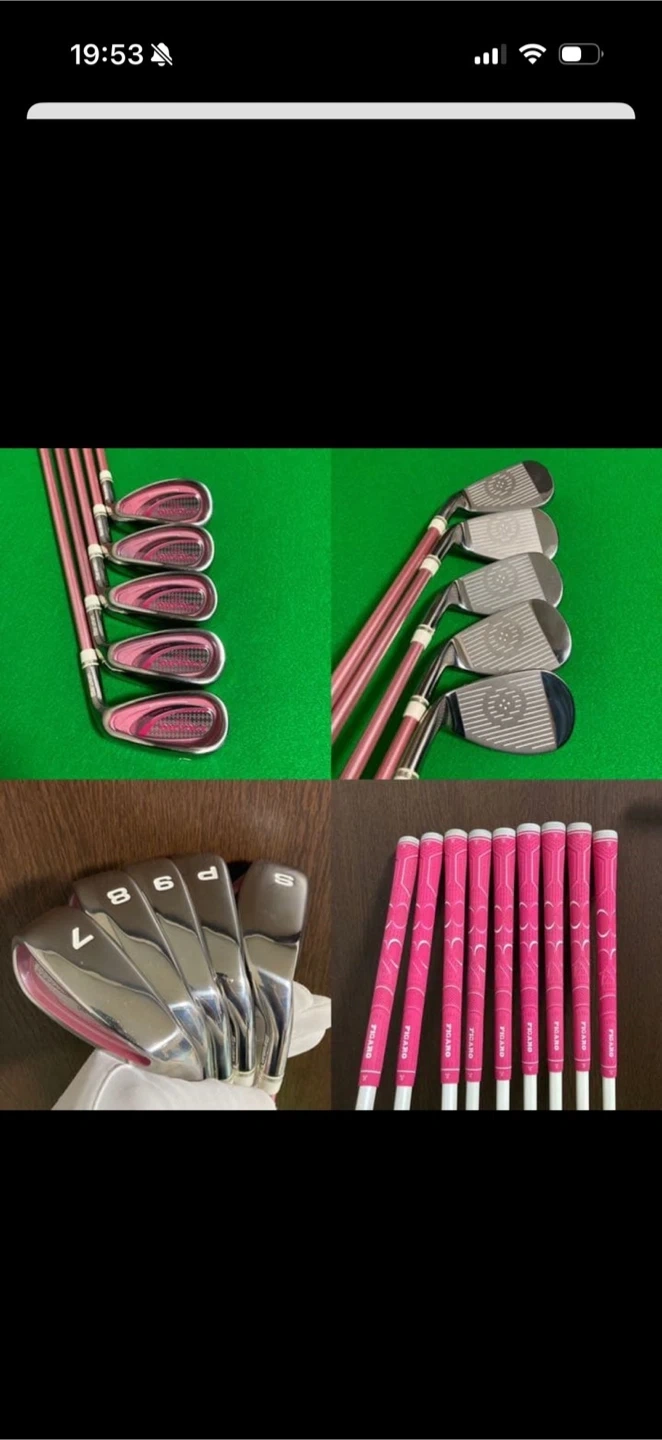 【商品】 マルマン FIGARO フィガロゴルフクラブ レディース 女性用 10本セット キャディバッグ右打ち右用 【付属品】 フード・ショルダーベルト・ヘッドカバー4個 パターカバー1個 セット内容 1W 14° 4W 22° 7W 27 U5 28° ※フレックスL 7.8.9アイアン PW SW ※フレックスL パター キャディバック ピンク/ホワイト 出産して中々ゴルフに行く時間が取れな くなってしまったので、こちらお譲りします。 ゴルフバッグとゴルフクラブとグローブも一式揃っているので、初心者の方も気軽に始められます!! 5回程しか使用していませんが、ゴルフクラブには傷があるのとバッグにも使用感や汚れが多少あります。 気になる方はご遠慮ください(>_<) デザインなどはとても可愛いのでテンション上がりながら練習できるのでおすすめです♩