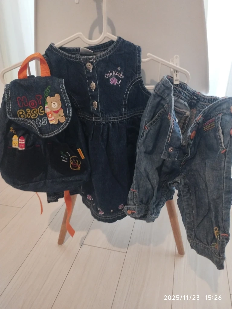 子供服のセットです。 ・ブランド:オシュコシュ(ワンピース) ・ブランド:babyGAP(ズボン) ・ミキハウスリュック 中古品であることをご了承ください