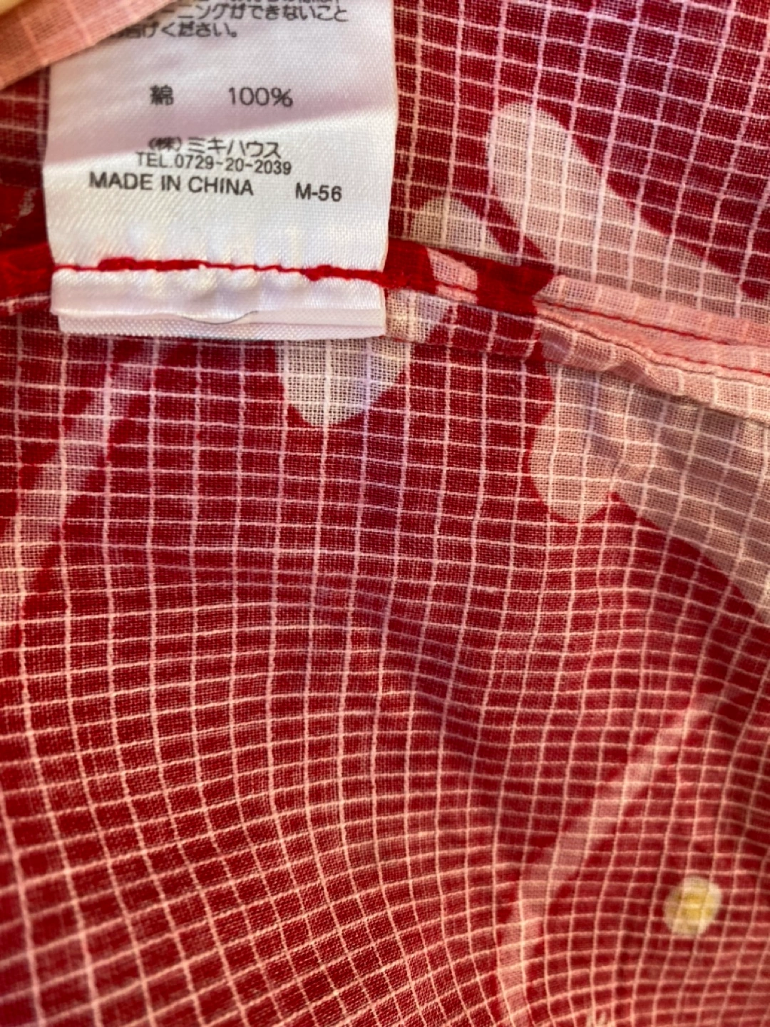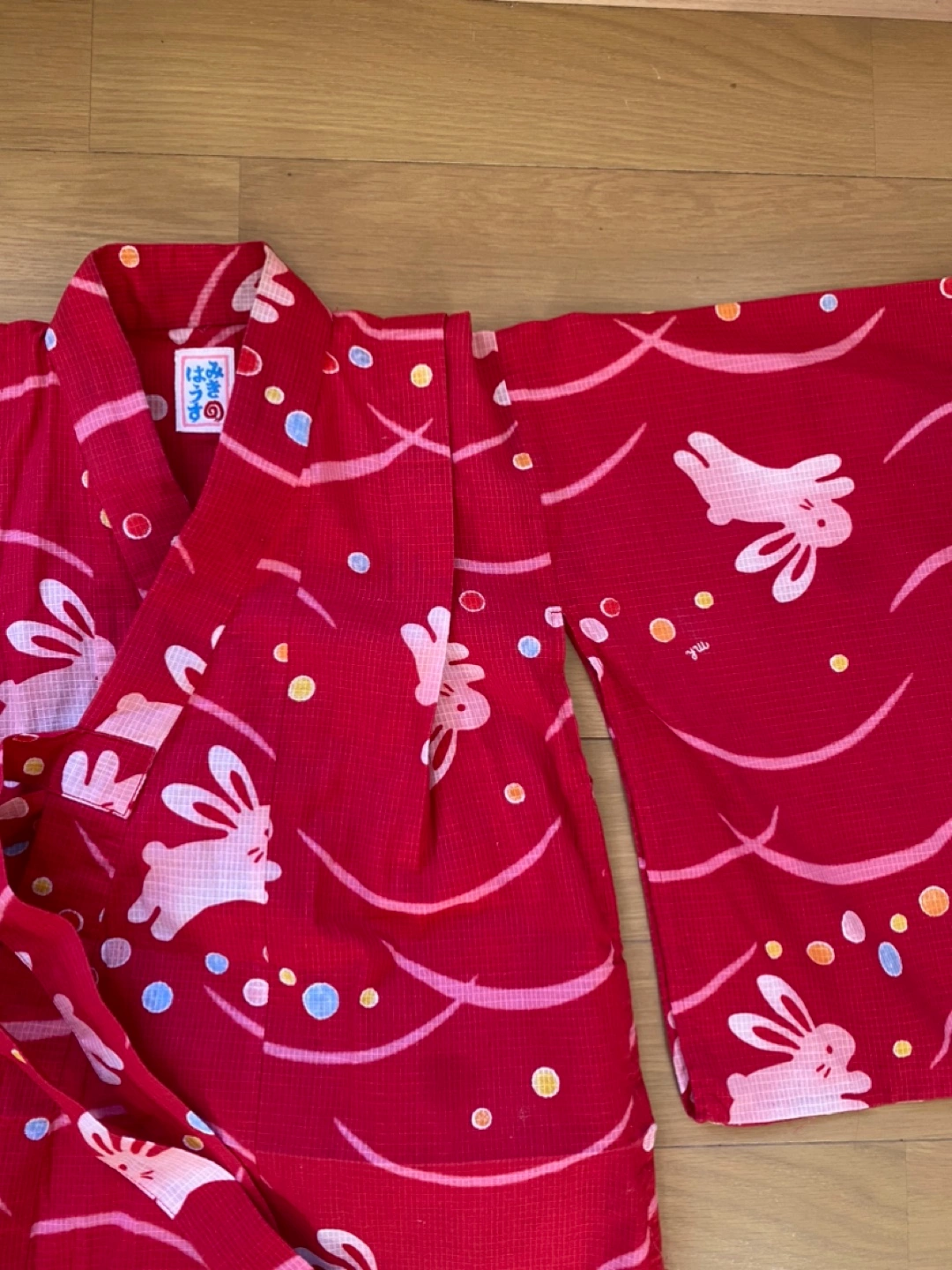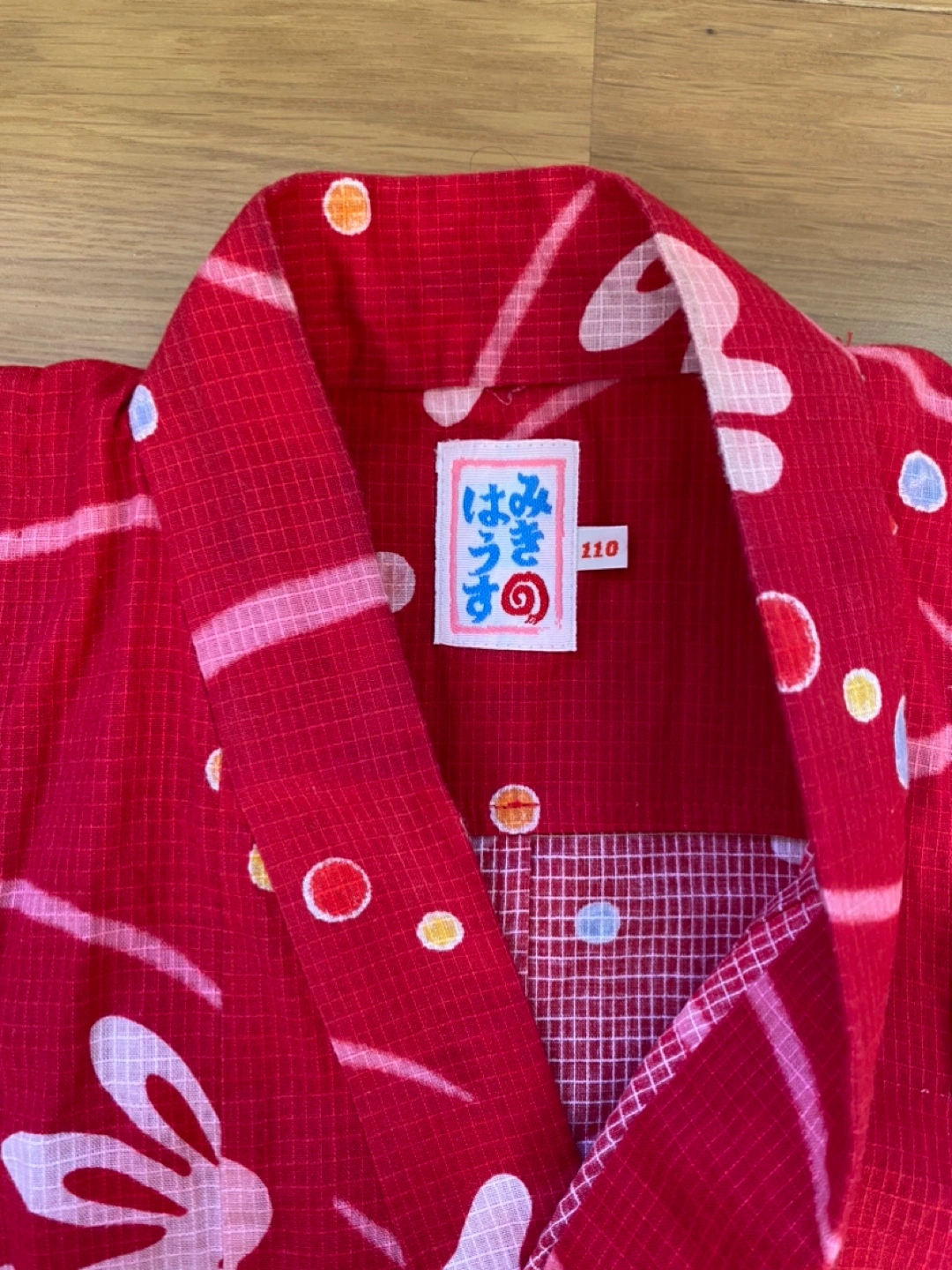 ミキハウスの浴衣です。生地もしっかりしていて、色も柄もとても可愛いです。白地の浴衣を着ている子が多いので、これを着るととても目立ちました。帯はついていません。 腰上げはほどいてあるので、お子さんの背に合わせて腰上げする必要があります。裾近くにほつれがあります。合わせの部分で着ると見えませんが念のため写真5枚目と1枚目ご確認下さい。 --以下お直しについて公式サイトからの引用です-- 簡単お直しで2~3年お召しいただけます。 ミキハウスの浴衣は子どもの成長を考えてゆとりのある縫製にしています。 そのため、裄丈と身丈はご家庭で簡単にお直ししていただけます。 お子様の身長に応じて ・肩揚げ(そでの裄丈を調節) ・腰揚げ(身丈を調節)を手縫いで調節してください。 【110cm(90-110cm対応)】 ■90cmにする場合 身丈を4cm腰上げ 裄丈を2cm肩上げ ■100cmにする場合 調整無し ■110cmにする場合 身丈を4cm揚げをおろす 裄丈を2cm揚げをおろす