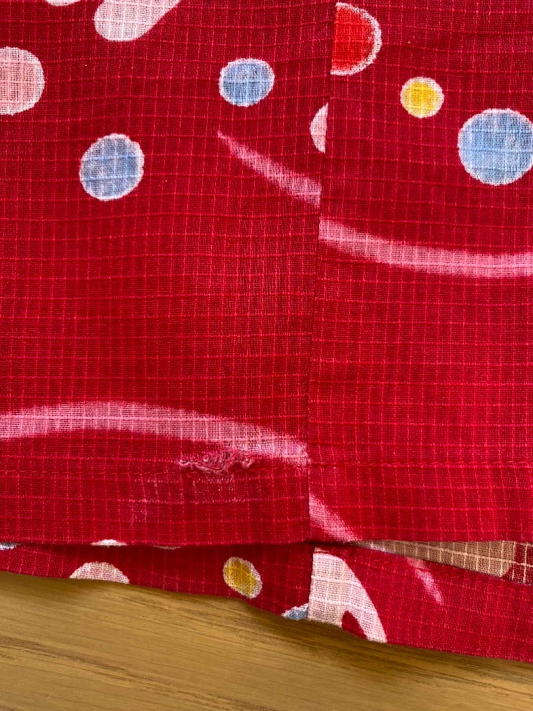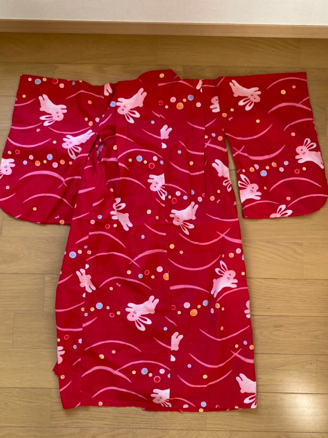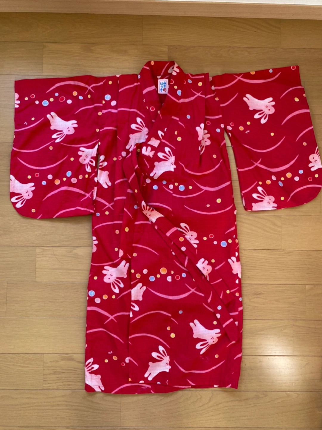 ミキハウスの浴衣です。生地もしっかりしていて、色も柄もとても可愛いです。白地の浴衣を着ている子が多いので、これを着るととても目立ちました。帯はついていません。 腰上げはほどいてあるので、お子さんの背に合わせて腰上げする必要があります。裾近くにほつれがあります。合わせの部分で着ると見えませんが念のため写真5枚目と1枚目ご確認下さい。 --以下お直しについて公式サイトからの引用です-- 簡単お直しで2~3年お召しいただけます。 ミキハウスの浴衣は子どもの成長を考えてゆとりのある縫製にしています。 そのため、裄丈と身丈はご家庭で簡単にお直ししていただけます。 お子様の身長に応じて ・肩揚げ(そでの裄丈を調節) ・腰揚げ(身丈を調節)を手縫いで調節してください。 【110cm(90-110cm対応)】 ■90cmにする場合 身丈を4cm腰上げ 裄丈を2cm肩上げ ■100cmにする場合 調整無し ■110cmにする場合 身丈を4cm揚げをおろす 裄丈を2cm揚げをおろす