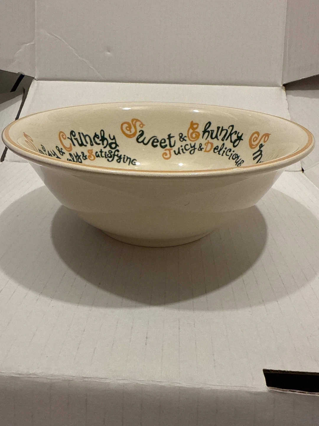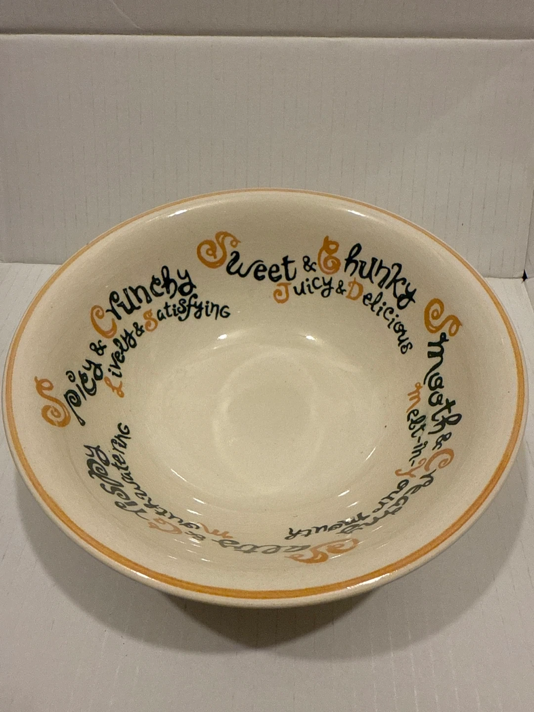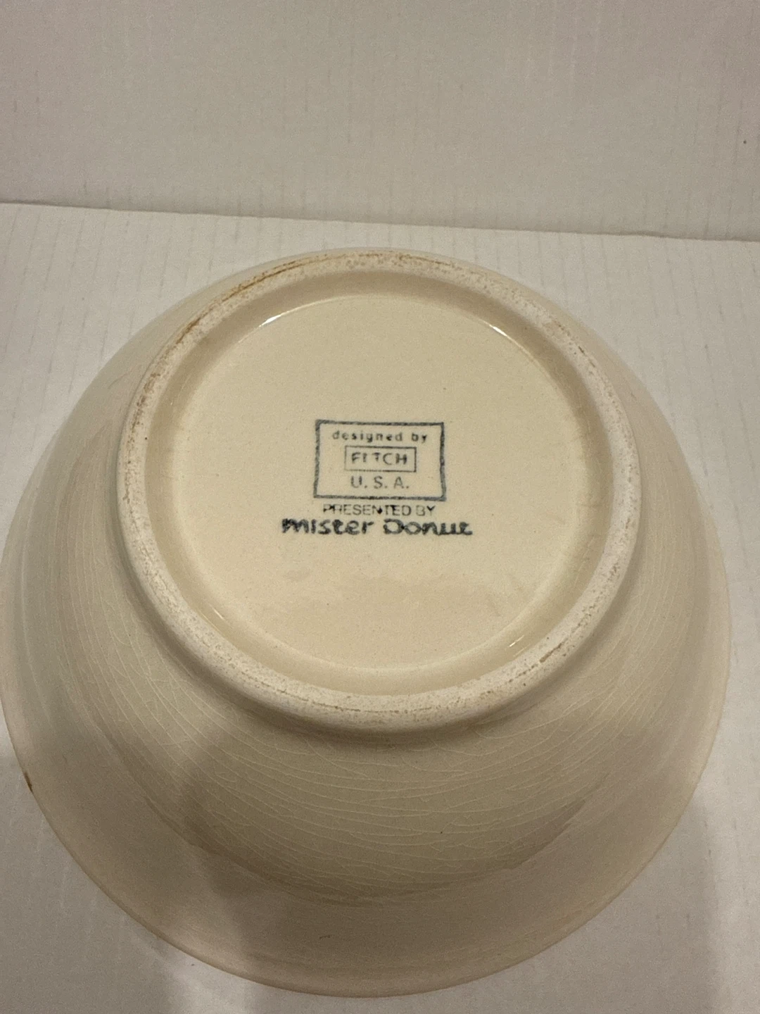 ミスタードーナツのボウルです。 ・ブランド:ミスタードーナツ ・designed by FITCH U.S.A. ・色:白地にオレンジと黒の文字 ・状態:使用感少なめ ・サイズ: 直径約16センチ、深さ約6センチ 言わずと知れたミスドのプレートですが、時代は結構古めですね。 ずっしり重たいです。 個人保管のお品であることご了承ください