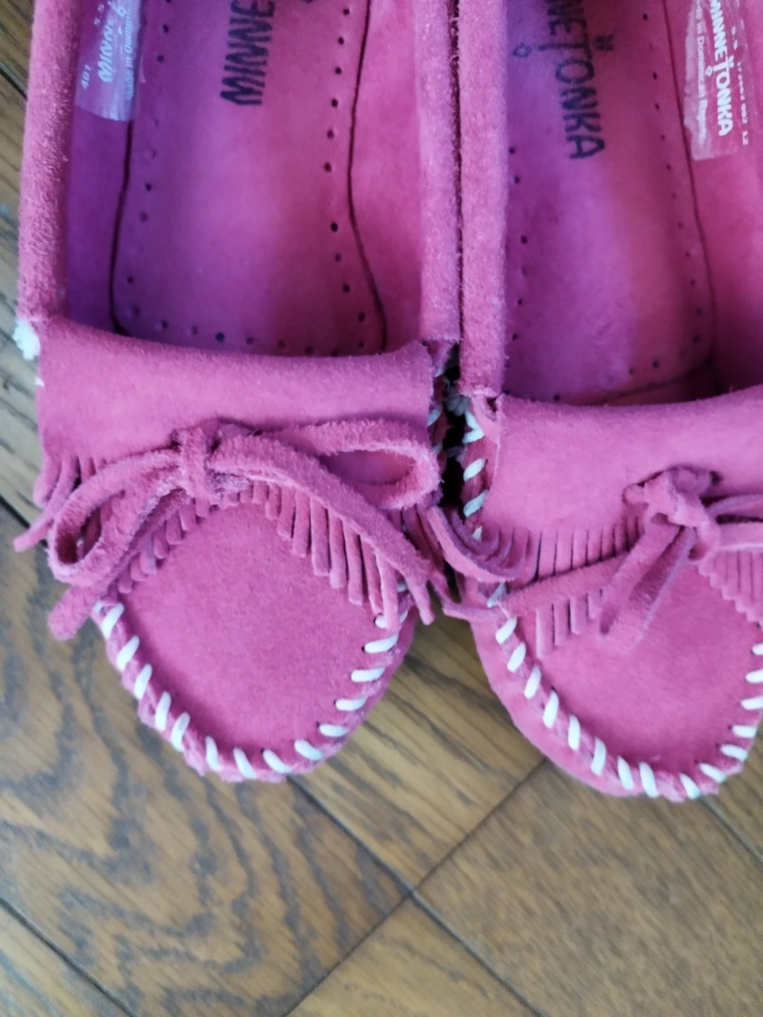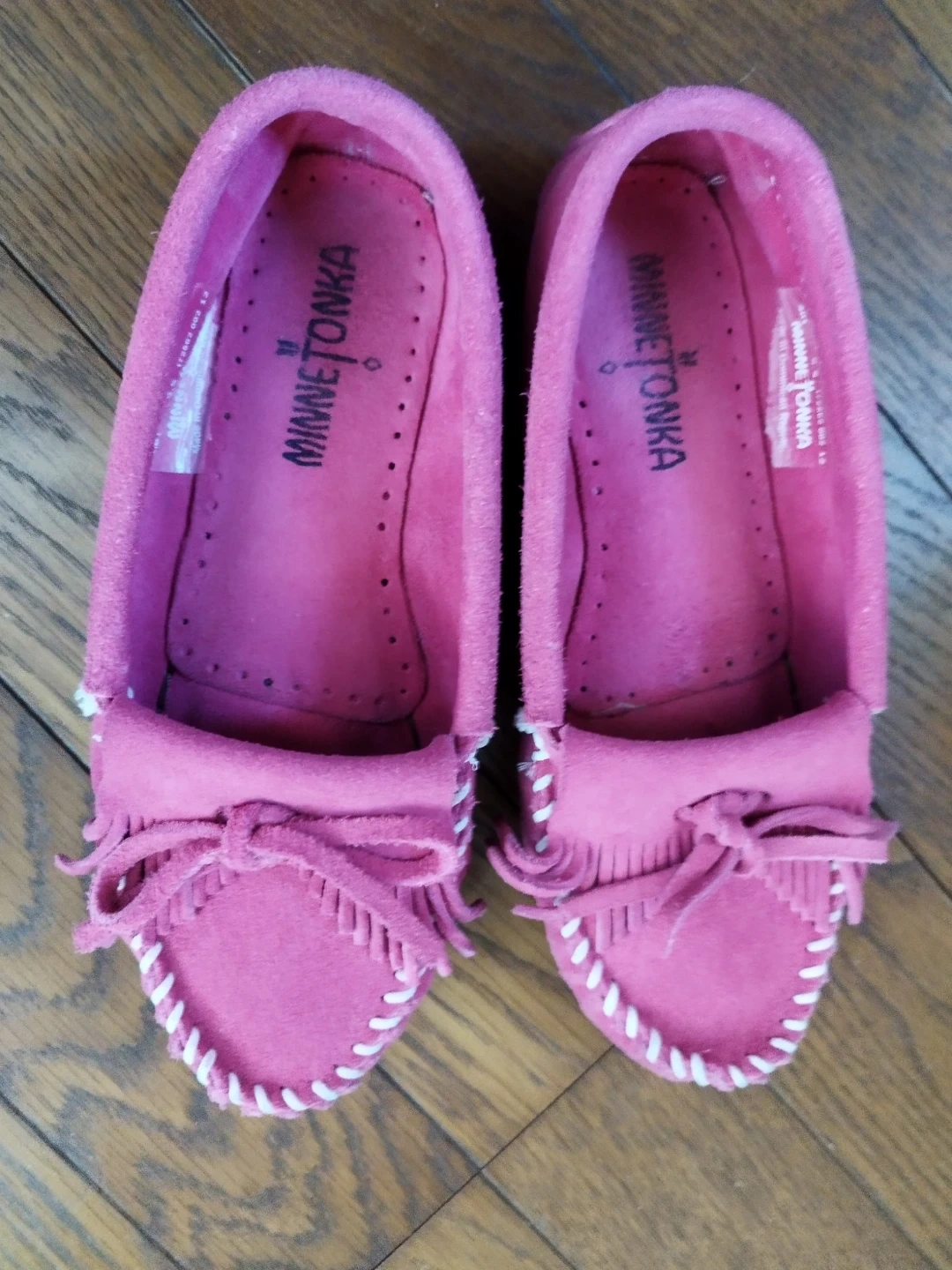 ミネトンカのモカシンです ・カラー:ピンク ・ブランド:MINNETONKA(ミネトンカ) ・サイズ:5.5 ・使用感は御座いますが、まだ綺麗な方だお思います。 ノークレームノーリターンですので、ご質問が御座いましたらお待ちしております。 宜しくお願い致します。 中古品であることご了承ください
