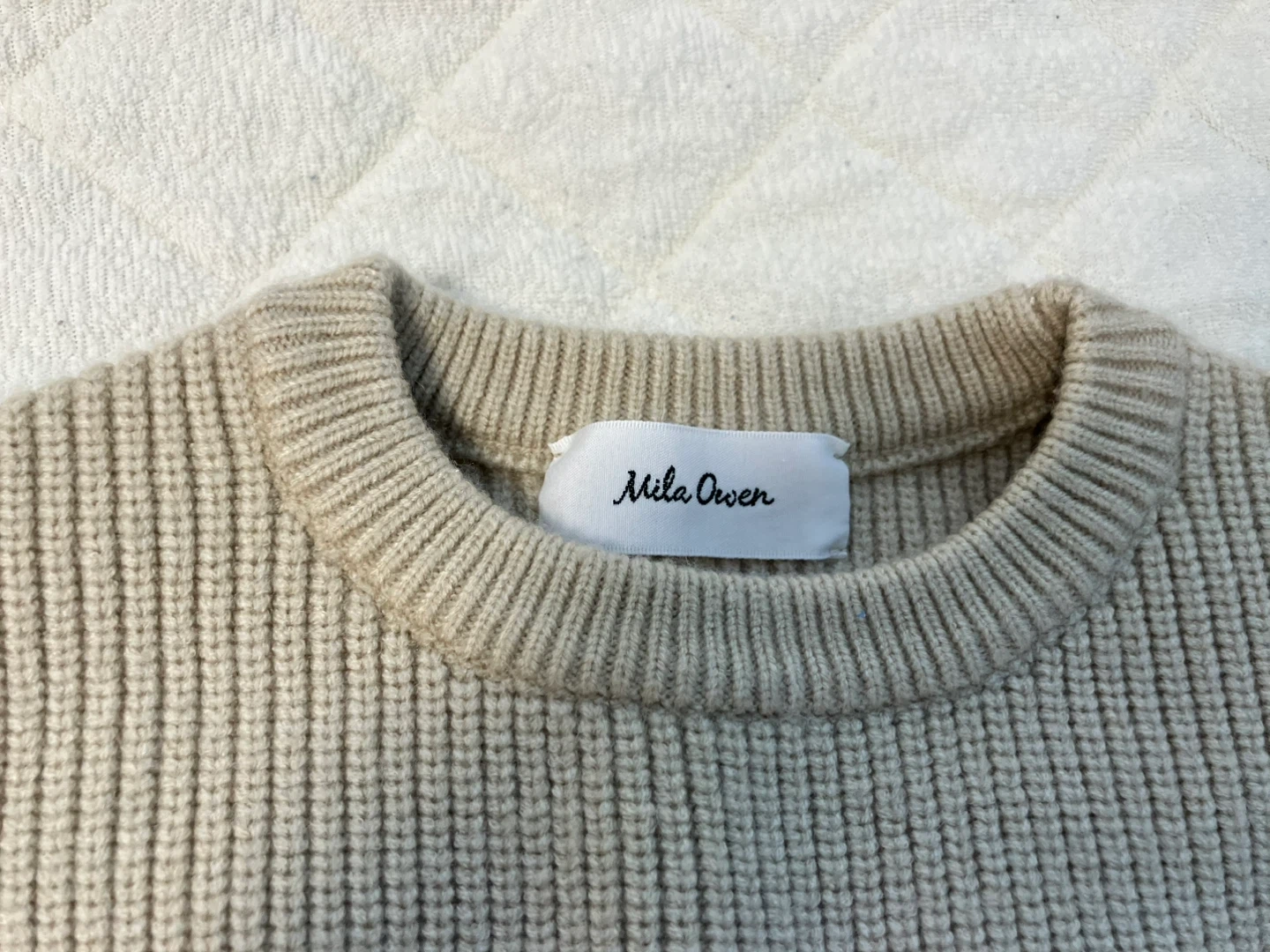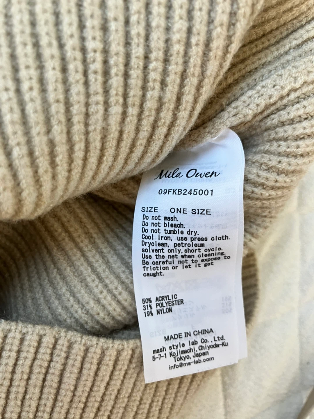 ミラオーウェンのニットセーターです 【情報】 ブランド:ミラオーウェン サイズ:ONE SIZE 型番:09FKB245001 素材:アクリル50%、ポリエステル31%、ナイロン19% カラー:ベージュ 【状態】 洗濯したのみで着用しておりません。 💫お引き渡しの際には、お手提げ袋をお持ちくださいませ。 💫お取引場所の相談可能です。プロフィールご覧くださいませ。