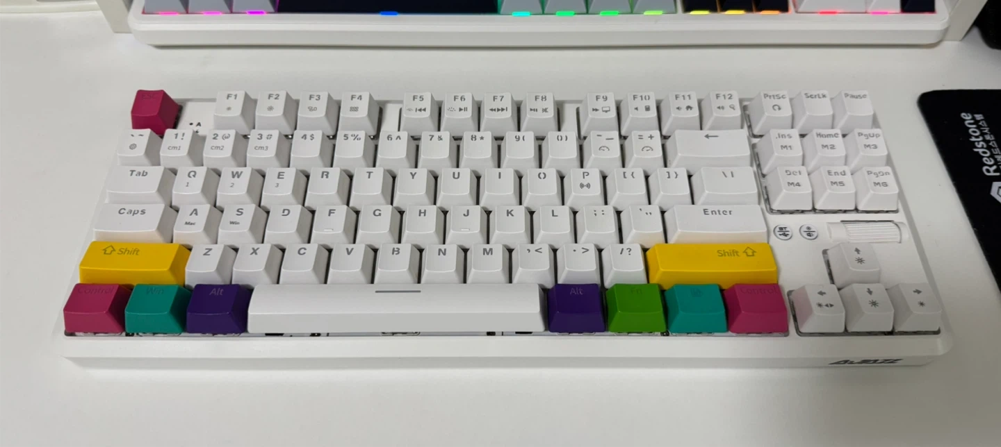 AJAZZのメカニカルキーボードです。 接続方はケーブルとBluetoothです。 日本語配列じゃなくて英語配列です。 赤軸で10keylessです。 入力に全く問題ありませんが、 右側にあるボリューム調整するノーブは使えないです。 ・キーキャップが複数付属あり 中古品であることをご了承ください。