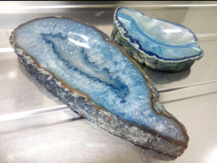 アガスターン 灰皿 H.Stern、agate trayです。 大小2個セットです。 大 約20cm × 約9cm × 2cm 小 約12cm × 約9cm × 2cm 灰皿として売られていました。 中央に窪みがあります。 小物入れにしてもいいですね。 パラオで購入しました。 未使用、撮影のため開封。 現品のみ。 #鉱石 #ミネラル #メノウ ご希望の方はお気軽にご連絡ください。