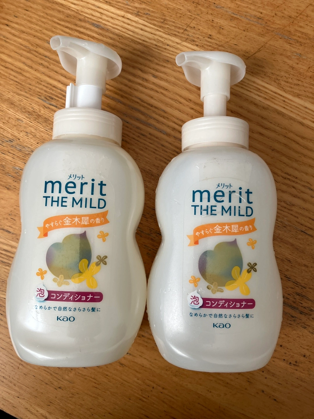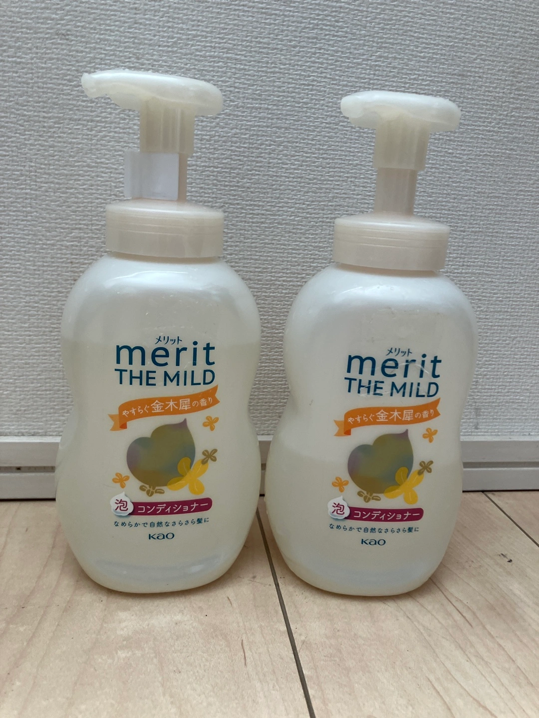 金木犀の香りが大好きでとても気に入って購入したのですが、サラッとするコンディショナーという物が自分には合わないので出品致します。 愛用されている方 いかがですか? 1本は新品(初めから8分目くらいの容量です) 1本は半分以上は残っています。 ・ブランド:メリット ・THE MILD ・泡コンディショナー ・内容量:540ml ・2本セット 1本は半分くらい使用