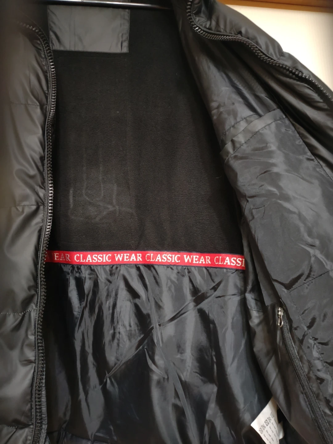 メンズの電熱ダウンジャケットです。 ・カラー:ブラック ・サイズ:L ・素材:100%ポリエステル ・内側に「EAR CLASSIC WEAR CLASSIC WEAR」の文字あり 中古品であることをご了承ください。