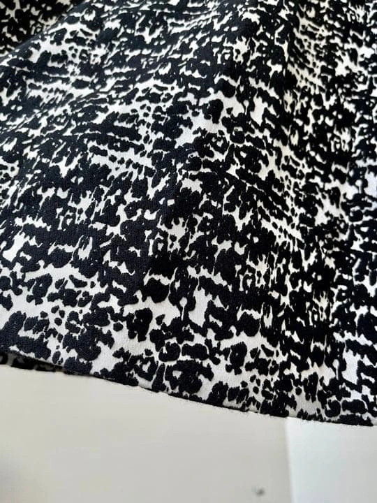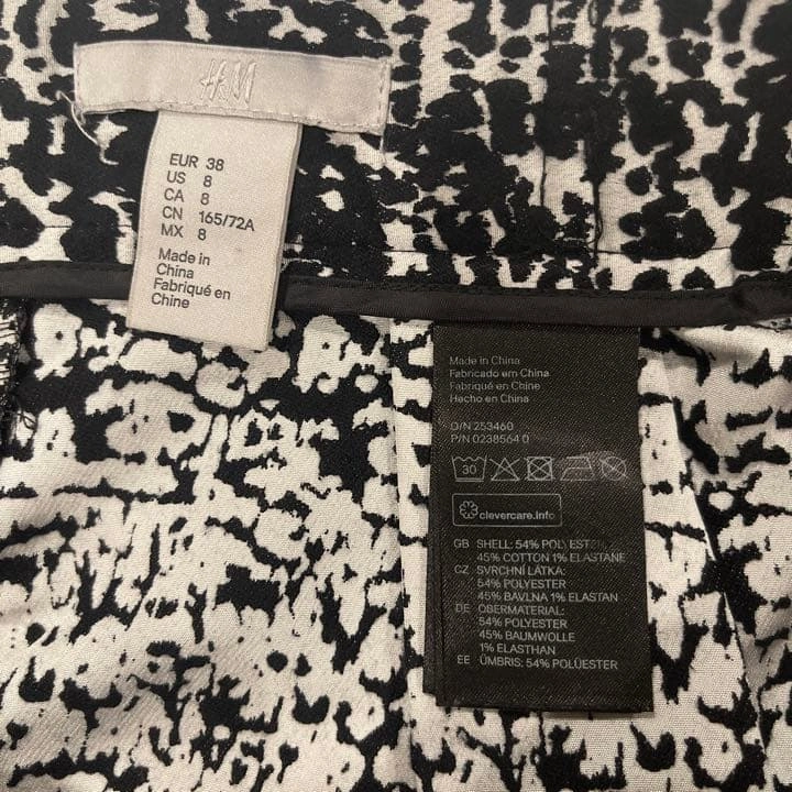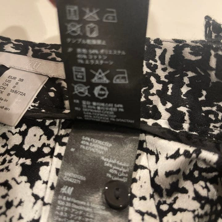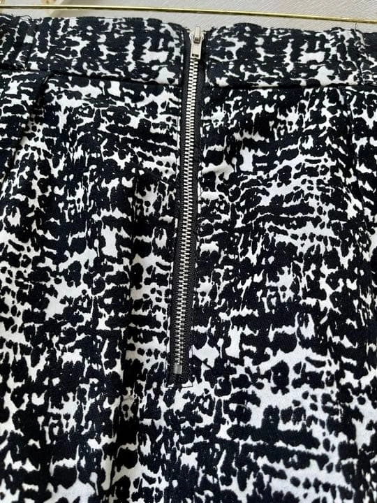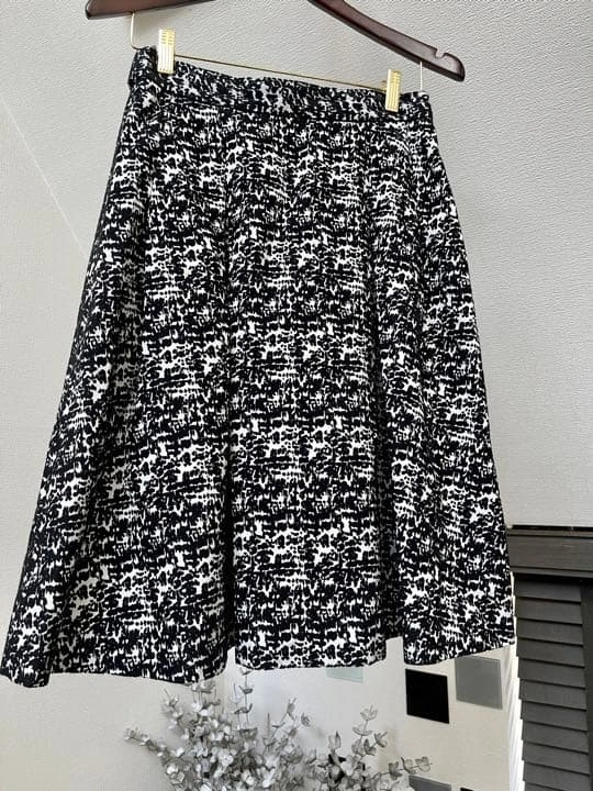 形のキレイな上品なイメージのスカートです。 N.Y.のH&Mで購入し、数回着用しました。 生地はしっかりしていて高級感があります。 膝下丈で裾がしっかり広がったままになるので、足元が細く見える効果が好きでした。 腰幅 36cm 着丈 63cm 素材 ポリエステル54% コットン45% エラスティック1% カラー···ブラック 柄・デザイン···その他 季節感···春、秋、冬 #モード #ブラック&ホワイト ご希望の方はお気軽にご連絡ください。