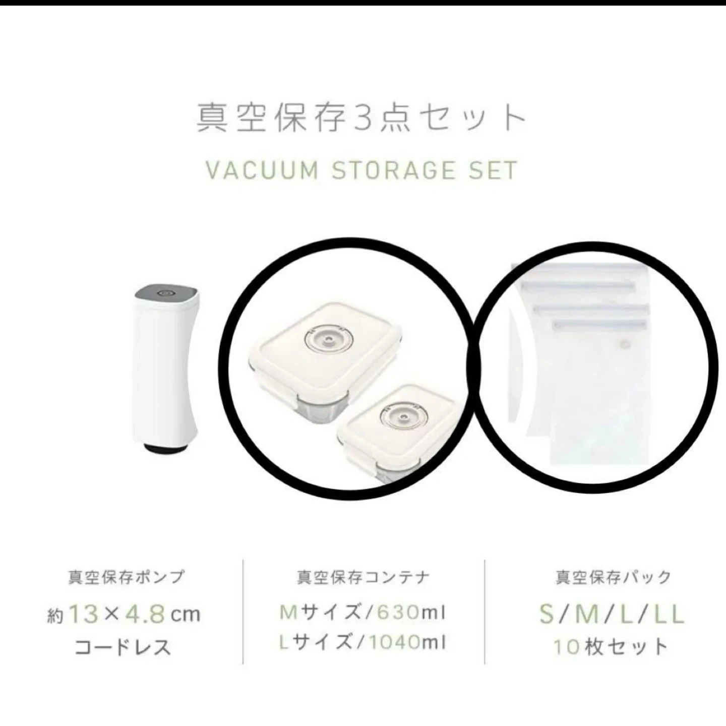 真空保存で食材の鮮度を保つコンパクトな保存セット。 セット内容 ★真空コンテナ(Mサイズ630ml)真空コンテナ( Lサイズ1,040ml) ★真空保存パック (14枚) S 4枚 M 4枚 L 2枚 L L 4枚 - 使用方法: 食材をコンテナに入れ、ポンプで真空状態に することで保存期間を延ばす - 特徴: コンパクトで収納しやすいデザイン、真空保存による鮮度保持 ⚠️ポンプは壊れてしまった為、コンテナと真空保存パックのみの出品になります! 【未使用】