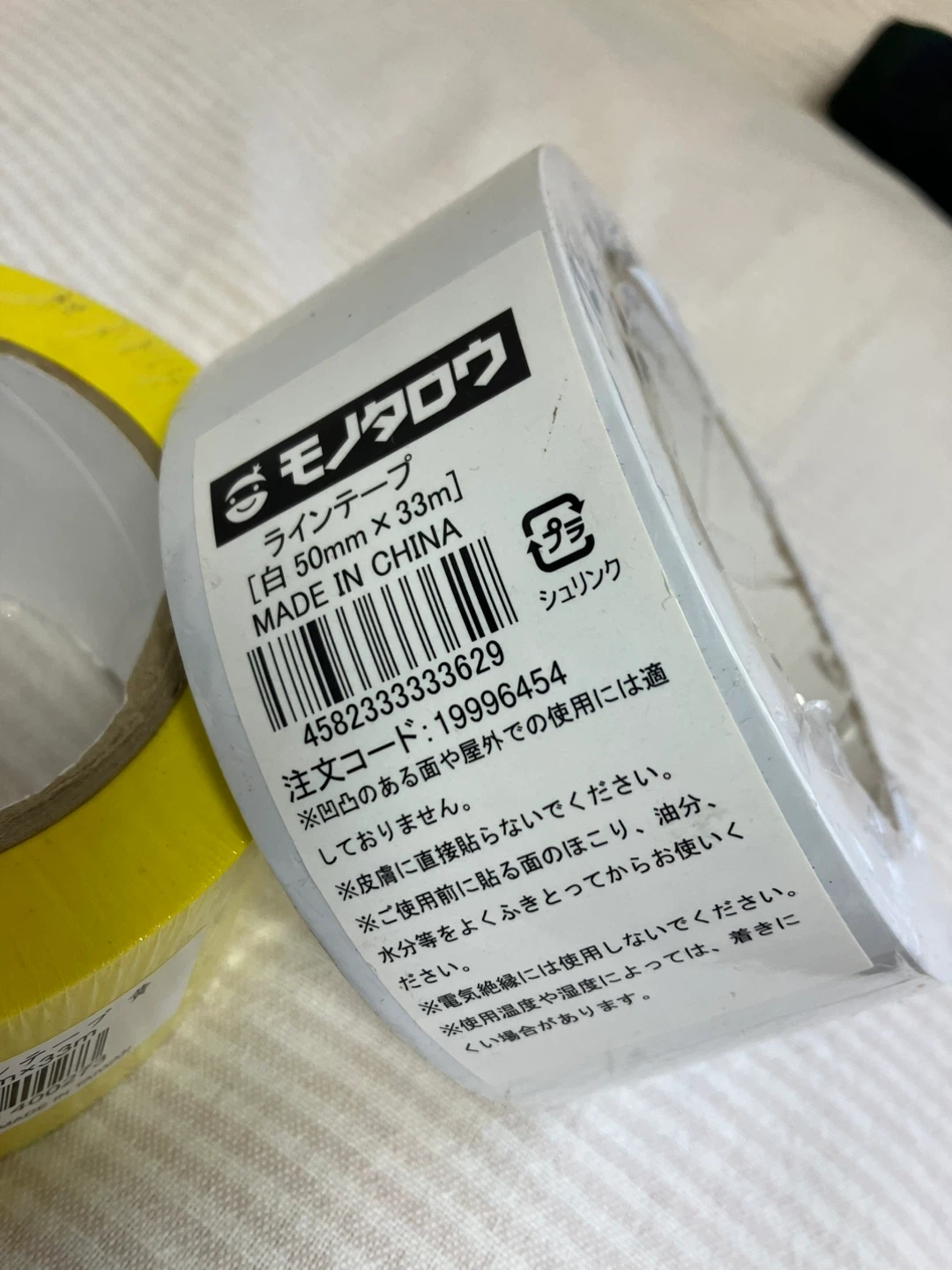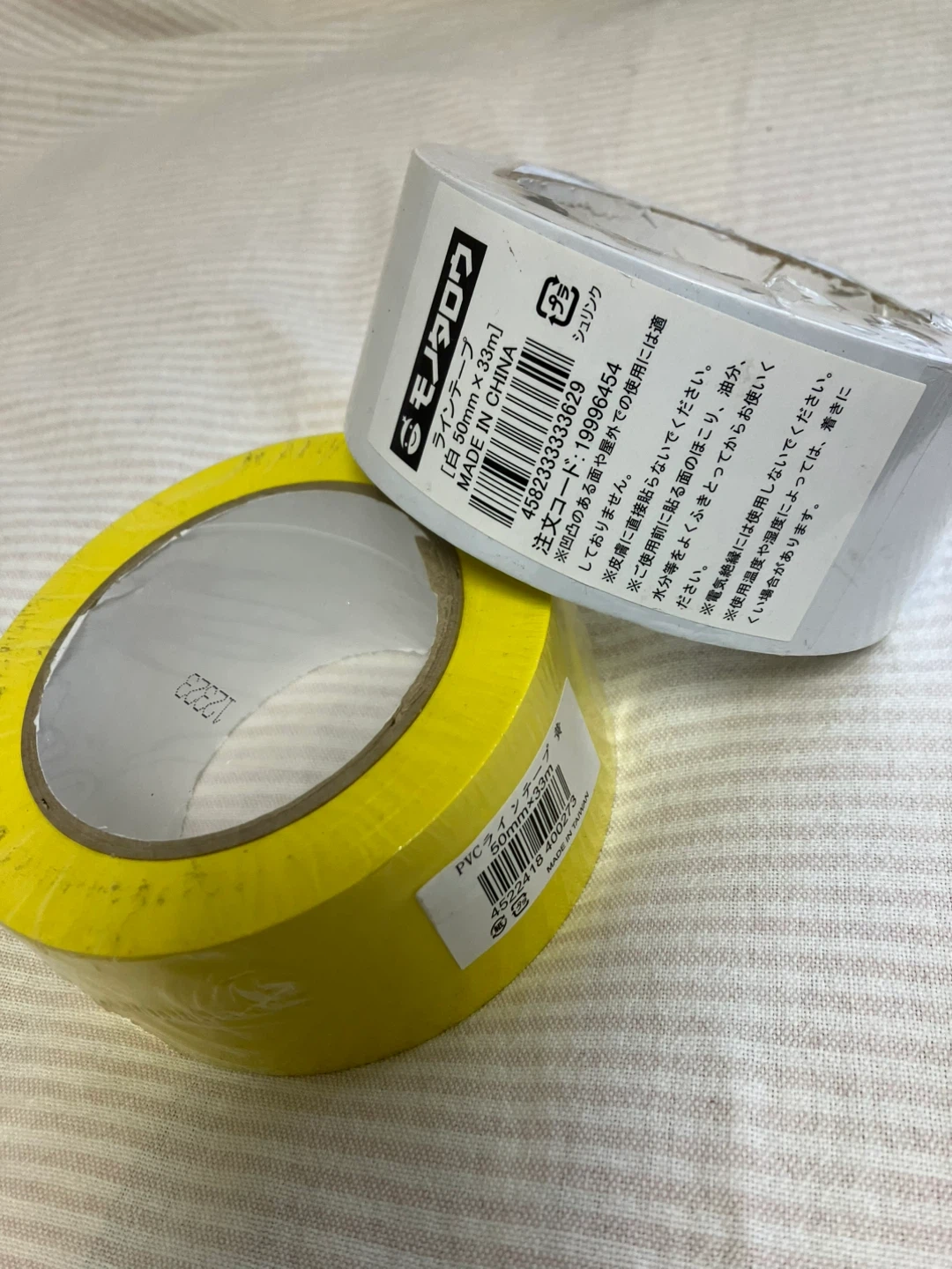 体育館の床に使えるラインテープ白とPVCラインテープ黄色のセットです。 ・ブランド:モノタロウ ・ラインテープ 白 50mm×33m MADE IN CHINA ・PVC ラインテープ 黄 50mm×33m MADE IN TAIWAN 中古品であることをご了承ください。