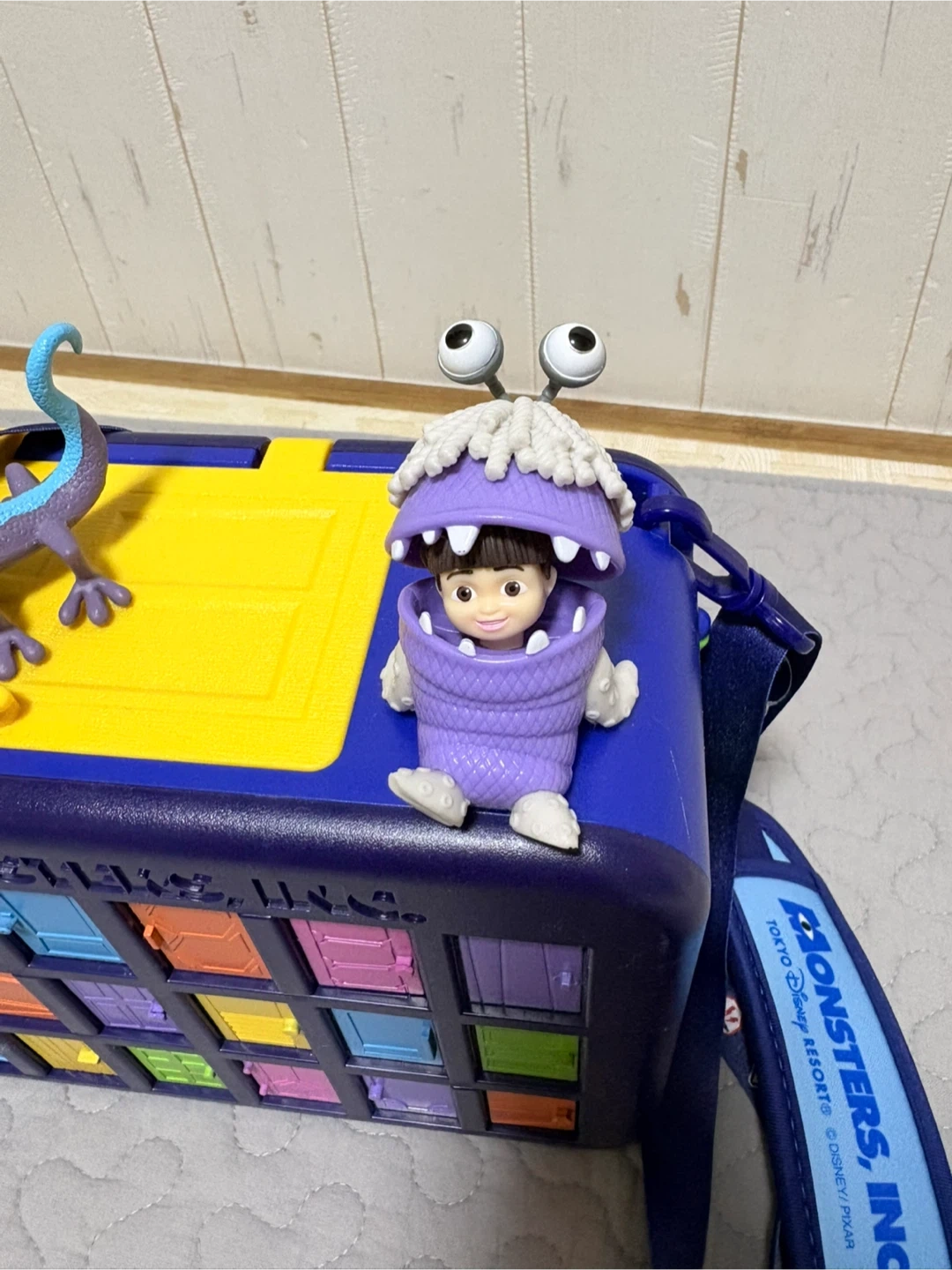 モンスターズインクのポップコーンバケットです🍿 ディズニーランドで購入した日に1度使用し その後洗って保管していました。 ブーの着ぐるみの帽子が開いたり、窓が空いたりなど仕掛けがいっぱいで子どもが喜びます☺️ 角に少し傷がありますので写真でご確認ください。