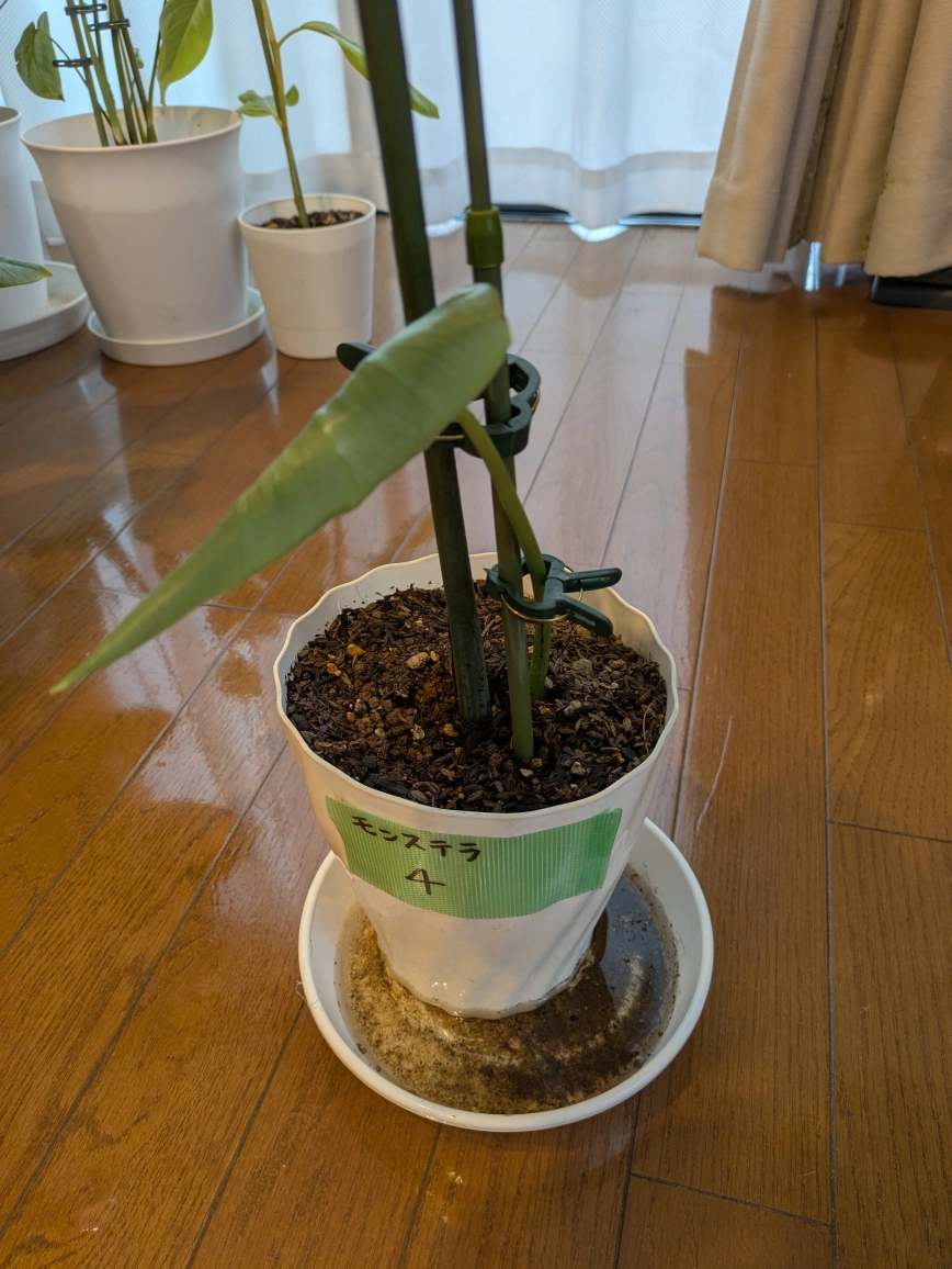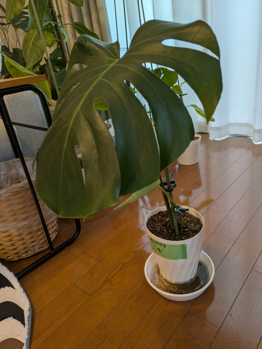 モンステラの観葉植物です!値下げしました!😀😀 ・鉢の色:白 ・状態:育成中 新芽が出ました! モンステラの葉15年物を剪定して根が出来ましたので植えました。 鉢のナンバーは、4です。直ぐに剥がせます。 日陰を好みます。水やりもほとんどいらずに育ちます。 鉢を大きくするともっと元気に大きくなり、新芽を沢山出すと思います。 どなたかとご縁がありますように! 宜しくお願いします(◍•ᴗ•◍)❤
