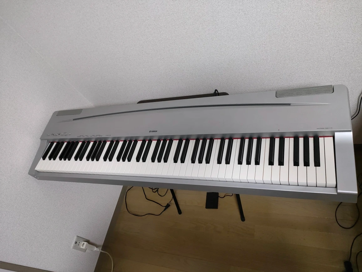 ヤマハの電子ピアノです。 【情報】 ブランド:ヤマハ 型番:P-70 【状態】 使用感はありますが、比較的きれいな状態です。 折りたたみテーブルの上に置いて使用していました。 スタンドやテーブルは付属しません。 【付属品】 電源アダプター、ペダル 中古品であることをご了承ください。