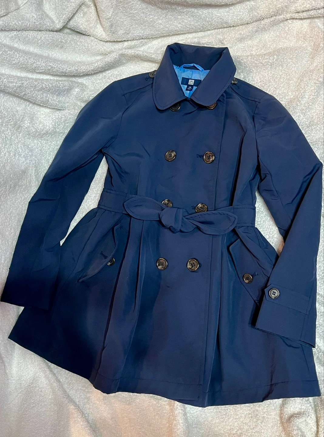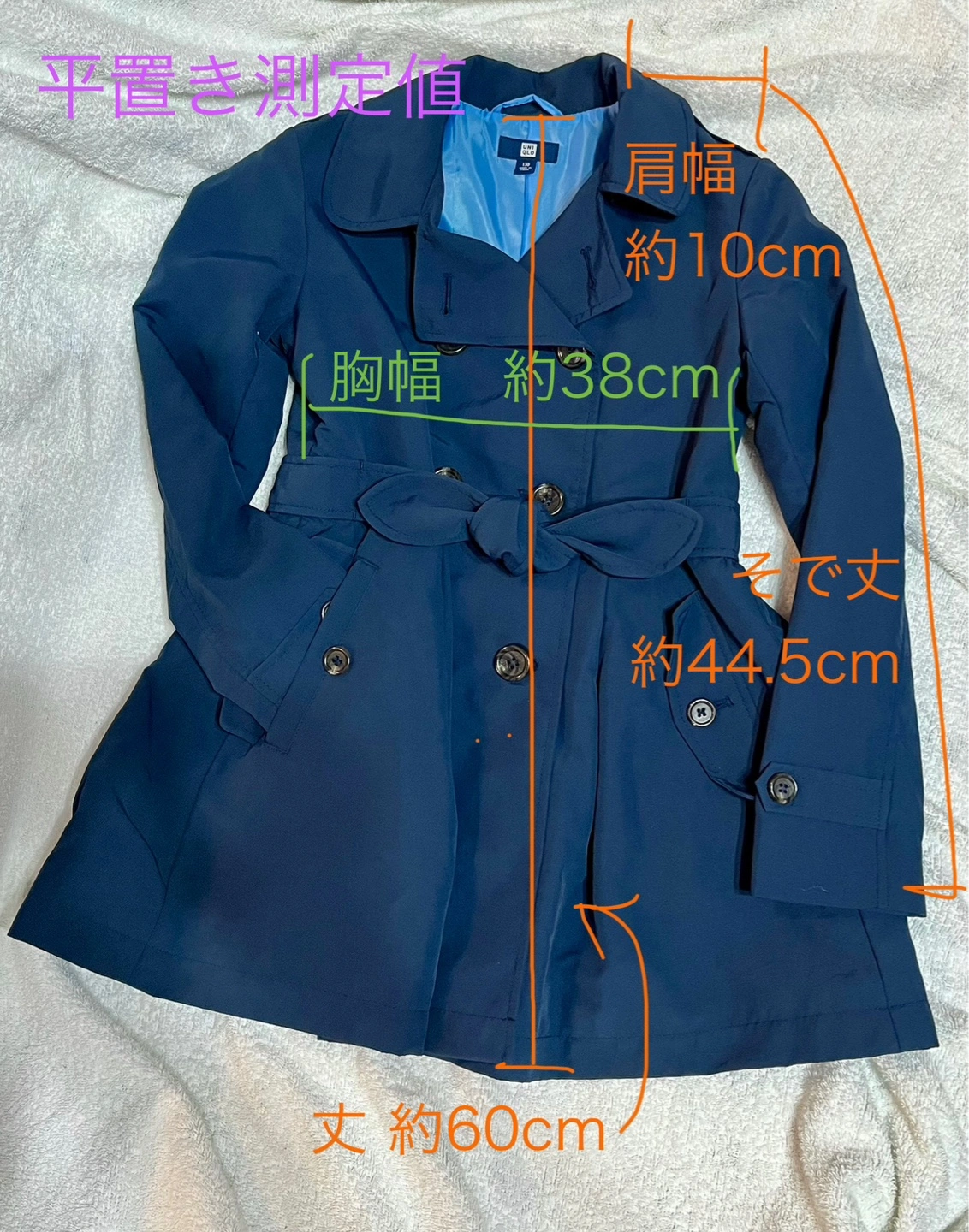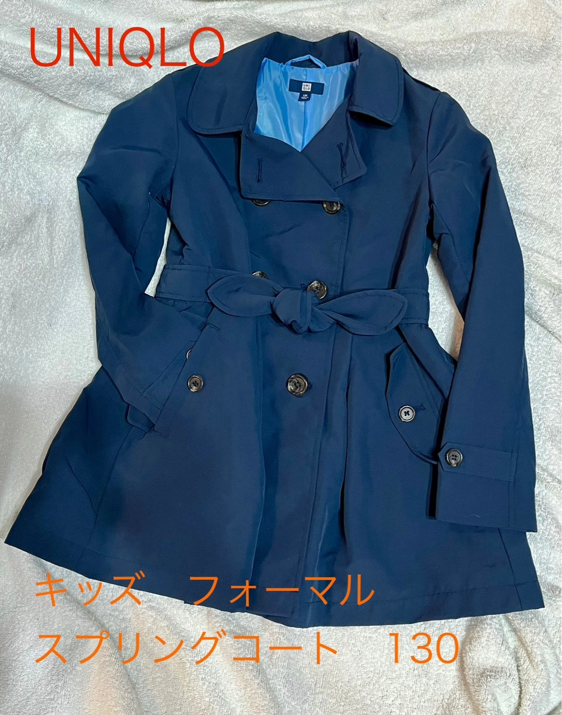 サイズ130、ユニクロのキッズフォーマル商品。 家庭で洗濯できる、フォーマル対応のトレンチコートです。 小学校お受験や、制服のある小学校への通学にもおすすめ! 裏地付きで、防風にもなります。 弱雨程度なら対応。 ウエストベルトは前後どちらでもOK、外れないので着用がラクです。 ウエスト下はフレアシルエットで、女の子らしいデザイン。 ボタンの留め方で2wayで着られます。 裏地にネームタグ付きですが、使用していません。 洗濯表示タグにネームシールの糊跡が若干あります。 サイズ130 詳細は、記載の画像でご確認ください。 材質 やや光沢のある布地、裏地はサテン様の光沢あり。 後ほど記入します 状態 多少の使用感はあるかと思いますが、美品です。 キズや擦れ、汚れ等:無し。 ボタン取れ:無し。 お引き渡し場所 は、ほかに小田急経堂駅付近も対応可能です。 #キッズトレンチコート #キッズコート #キッズフォーマル #お受験コート #オケージョンコート #キッズお受験 #小学校受験 #コート紺 #コートネイビー #コート130