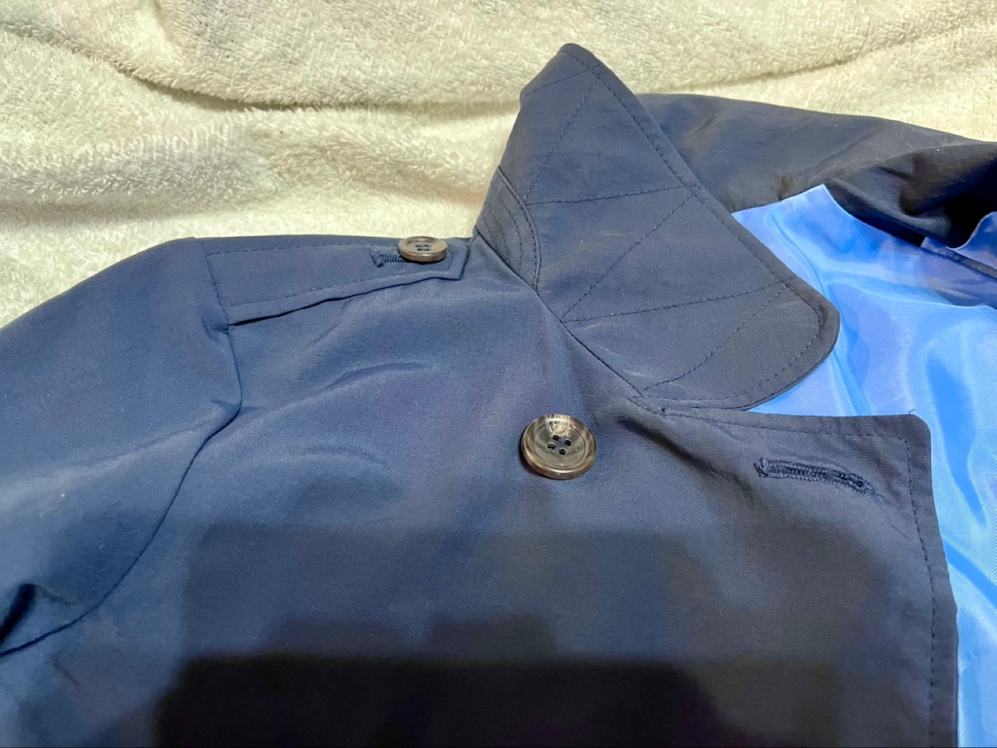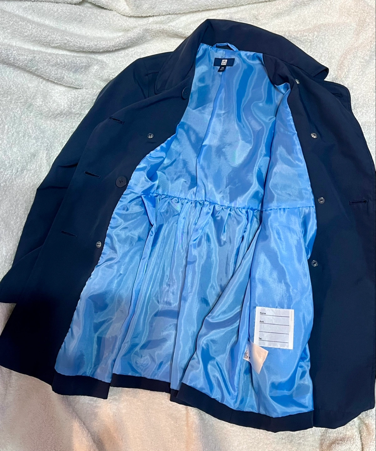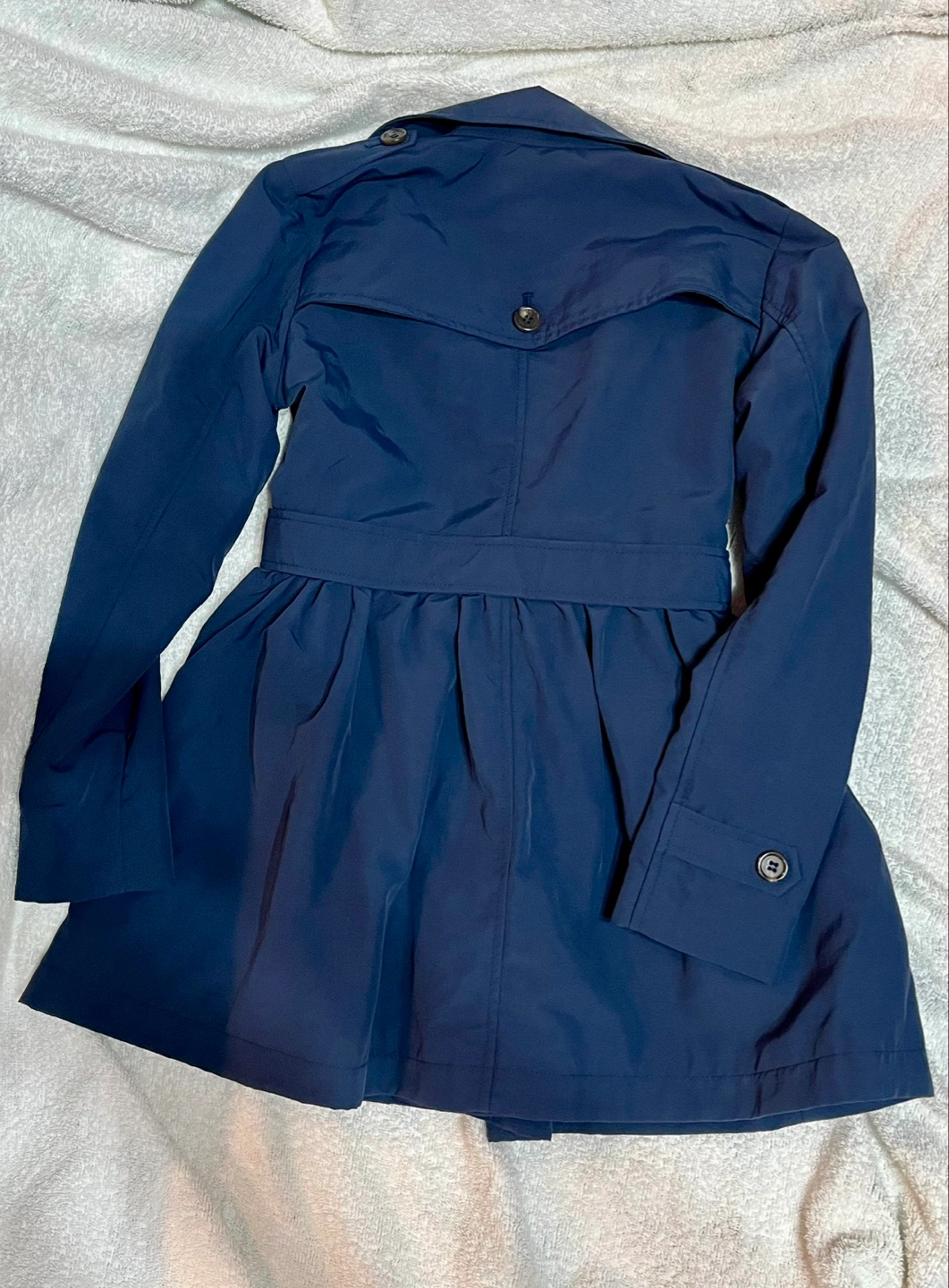 サイズ130、ユニクロのキッズフォーマル商品。 家庭で洗濯できる、フォーマル対応のトレンチコートです。 小学校お受験や、制服のある小学校への通学にもおすすめ! 裏地付きで、防風にもなります。 弱雨程度なら対応。 ウエストベルトは前後どちらでもOK、外れないので着用がラクです。 ウエスト下はフレアシルエットで、女の子らしいデザイン。 ボタンの留め方で2wayで着られます。 裏地にネームタグ付きですが、使用していません。 洗濯表示タグにネームシールの糊跡が若干あります。 サイズ130 詳細は、記載の画像でご確認ください。 材質 やや光沢のある布地、裏地はサテン様の光沢あり。 後ほど記入します 状態 多少の使用感はあるかと思いますが、美品です。 キズや擦れ、汚れ等:無し。 ボタン取れ:無し。 お引き渡し場所 は、ほかに小田急経堂駅付近も対応可能です。 #キッズトレンチコート #キッズコート #キッズフォーマル #お受験コート #オケージョンコート #キッズお受験 #小学校受験 #コート紺 #コートネイビー #コート130