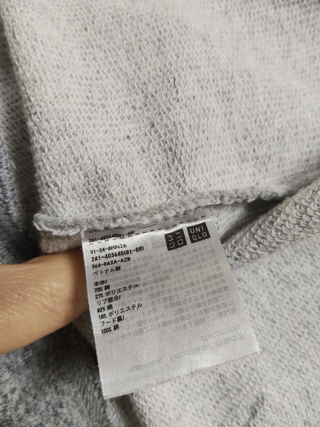 ユニクロのジップアップパーカーです。 【情報】 ブランド:ユニクロ サイズ:L 素材:本体 73% 綿、27% ポリエステル、リブ部分 82% 綿、18% ポリエステル、フード裏 100% 綿 製造国:ベトナム 【状態】 使用感はありますが、目立つ傷や汚れはありません。 ご不明点があればお気軽にご連絡ください。