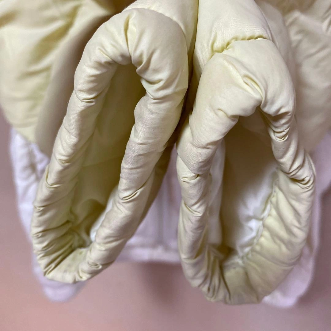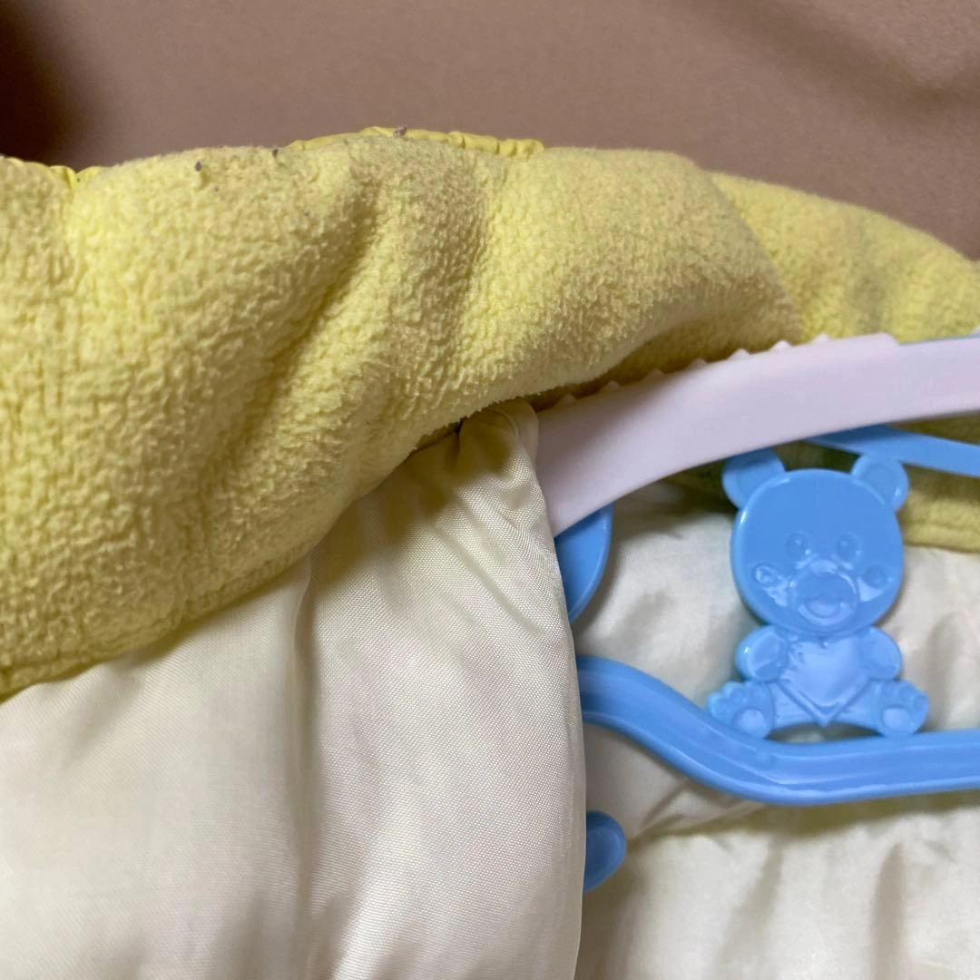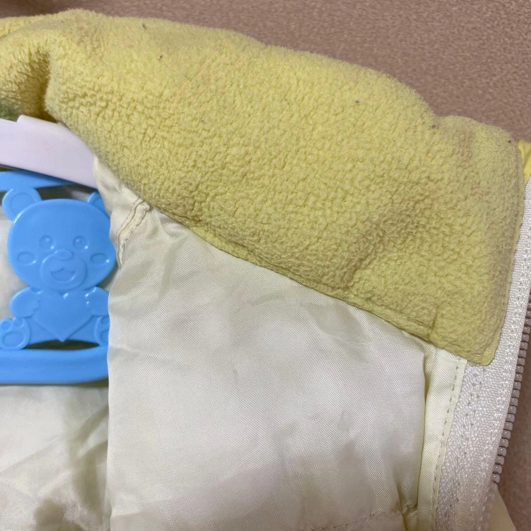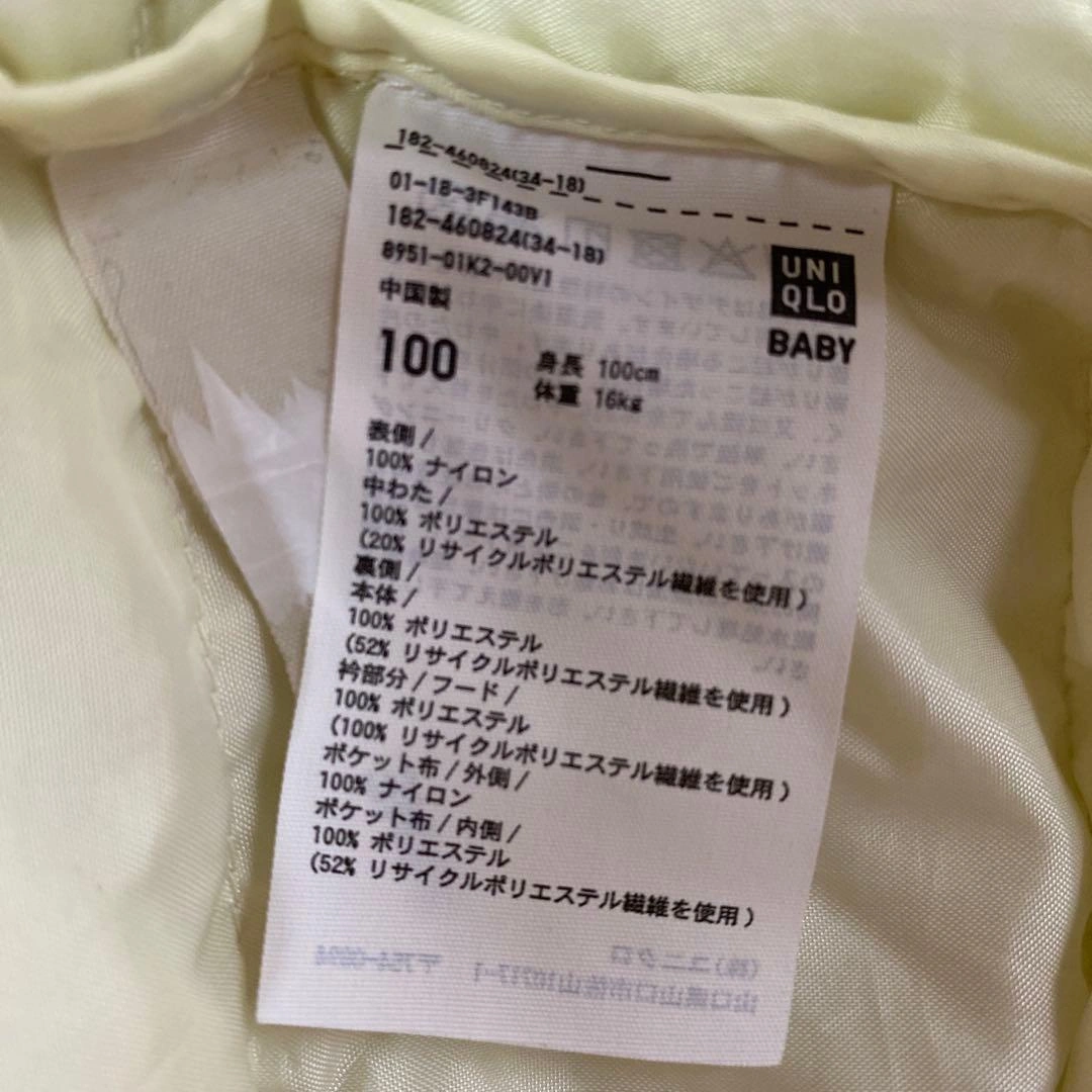 ユニクロの中綿ダウンです。 フードは未使用です。 外遊び用で愛用していましたので、首元含め全体的に黒ずんでおり、前見ごろに黄色の絵の具?と泥汚れのシミもあります。中綿もフカフカ感は減っています。 タグにお名前シールの剥がした跡があります。 ご希望の方はお気軽にご連絡ください。