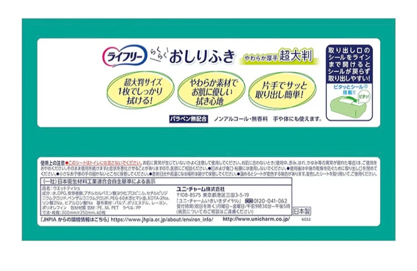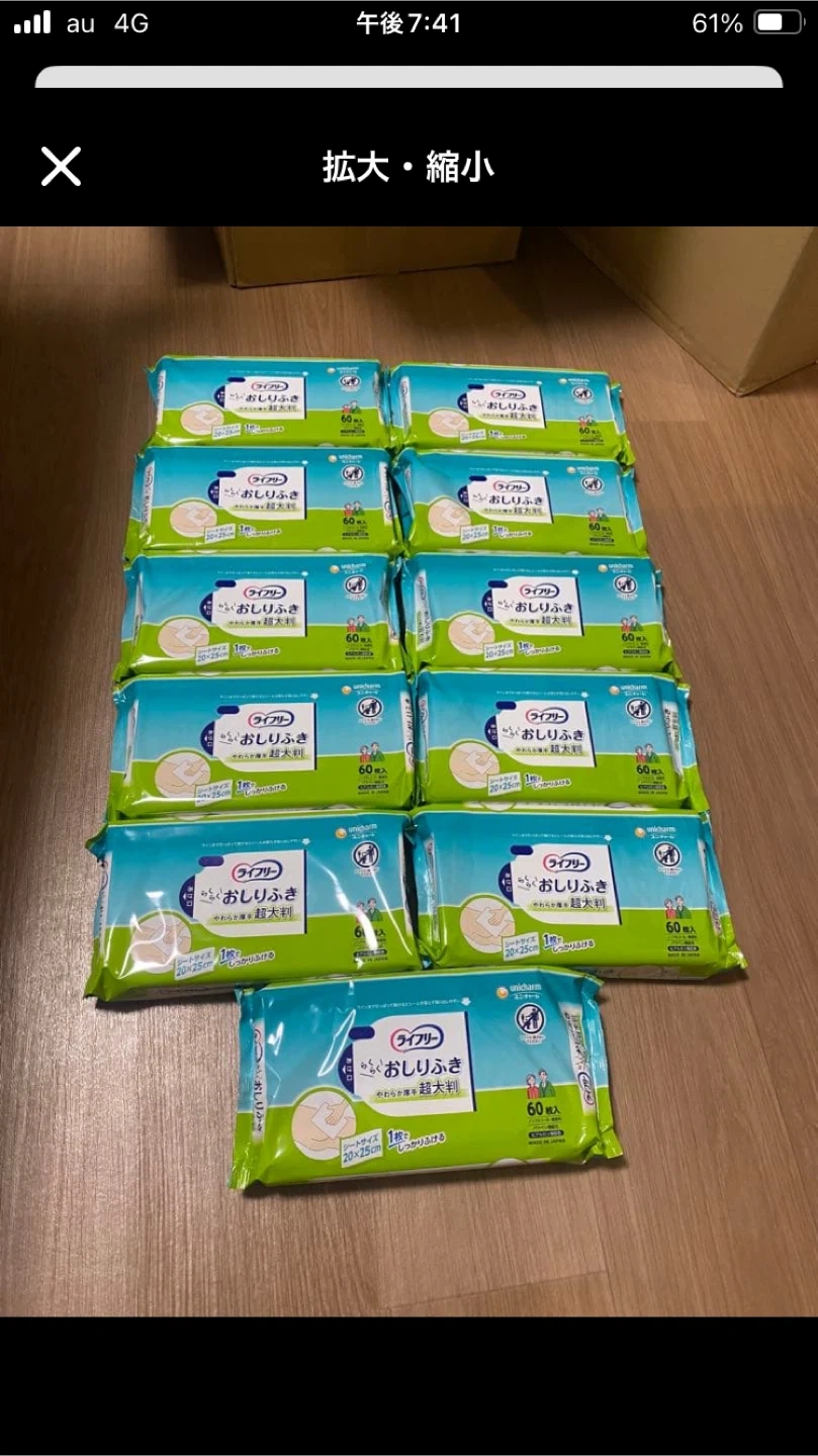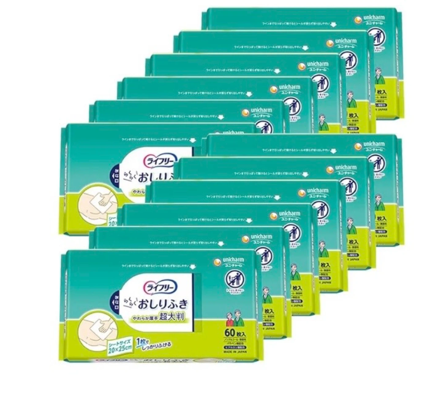 ユニ・チャーム ライフリ おしりふきです。 ・ブランド:ユニ・チャーム ・商品名:ライフリ らくらくおしりふき やわらか厚手 超大判 ・シートサイズ:20×25cm ・枚数:60枚 新品1ケースと11個です。Amazonで間違えて注文。返品出来ないので出品します。 1ケース 4,222円でした。 2ケースで8,444円−1個分ですが 取りに来ていただける方。 23個で6,500円でお譲り致します。 他にも出しており早いもの順てすので 気になる方は是非ご連絡ください。