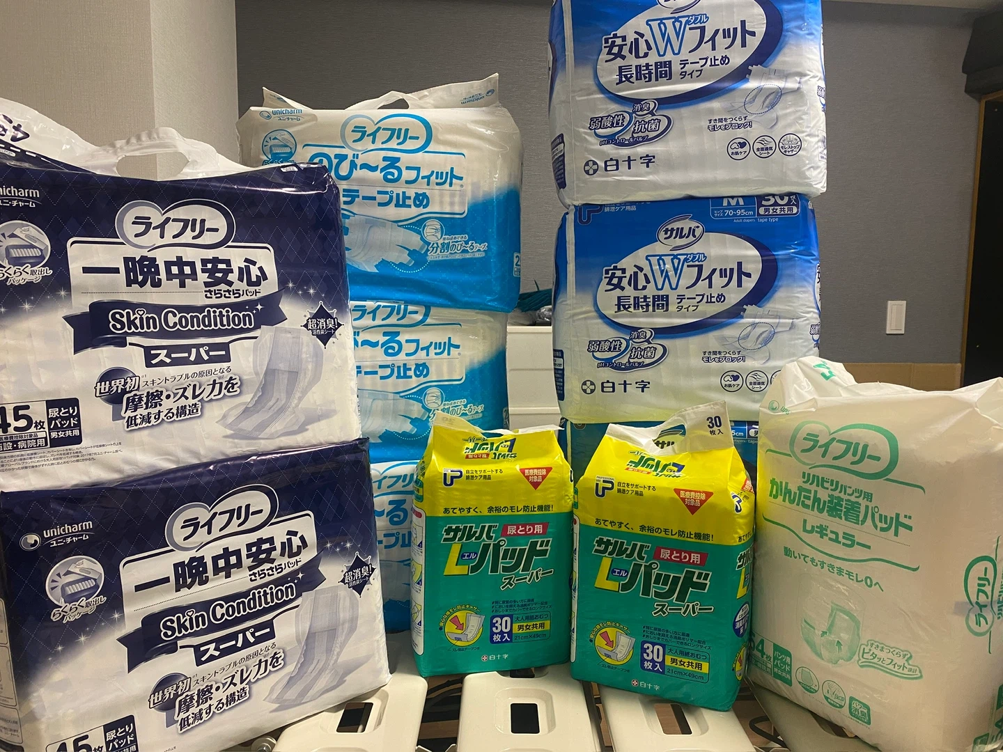 紙おむつ、尿とりパッドのセットです。 ・ライフリー 一晩中安心 Skin Condition スーパー 45枚入り ・ライフリー び〜るフィットテープ止め ・サルバ 安心Wフィット 長時間テープ止めタイプ ・サルバ 尿とりパッド スーパー 30枚入り ・ライフリー リハビリパンツ用かんたん装着パッド レギュラー 新品沢山あります。 価格のご相談も少しでしたら検討させて頂きます。他にも出品しておりますので、先に売り切れたら終了となります。是非宜しくお願い致します。 合計金額 2万円相当→11000円→8888円 それを6,500円にいたします。 かなりお買得❗️早い物勝ちです‼️