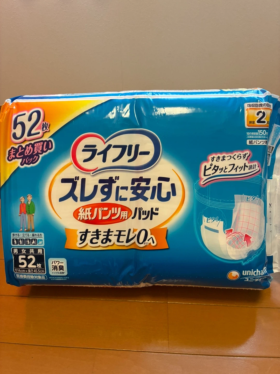ライフリー ズレずに安心 紙パンツ用パッドです。3袋セットの値段です。 ・ブランド:ライフリー ・紙パンツ用パッド ・52枚入り ・男女兼用 ・サイズ:巾16cm×長さ45.5cm 他のサイトでも出品しているので、突然なくなる場合があります。