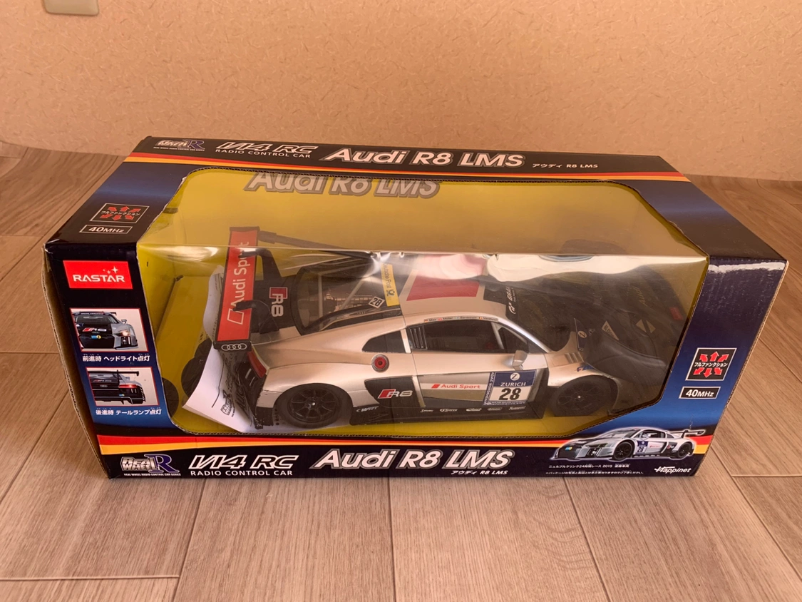ラジコン 1/14スケール RC Audi R8 LMS 動作確認済 単3電池5本-本体、 9V電池1本-コントローラ- 対象年齢 :6才以上 電池種別 :電池は別売りのため別途ご購入ください。 人気のGT仕様のスーパーカーのレーシングモデルが遂に登場! コントローラーはレーシング仕様でレーシングドライバー気分が味わえる! 周波数: 40MHz パッケージ形態: ウインドウサック箱 [セット内容]本体、コントローラー