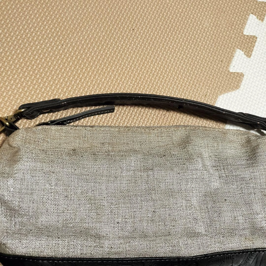 リネンとレザーのハンドバッグです。エンボス加工が特徴です。 素材: リネンとレザーのコンビネーション 状態: 持ち手に擦れ傷あり デザイン: エンボス加工のレザー部分あり 使用感、染みや黄ばみがあります。 ファスナー付近に黄ばみ有。 染みも有り。 持ち手や底部分に剥がれ有り。 内側に毛玉有り。 ご覧いただきありがとうございます。