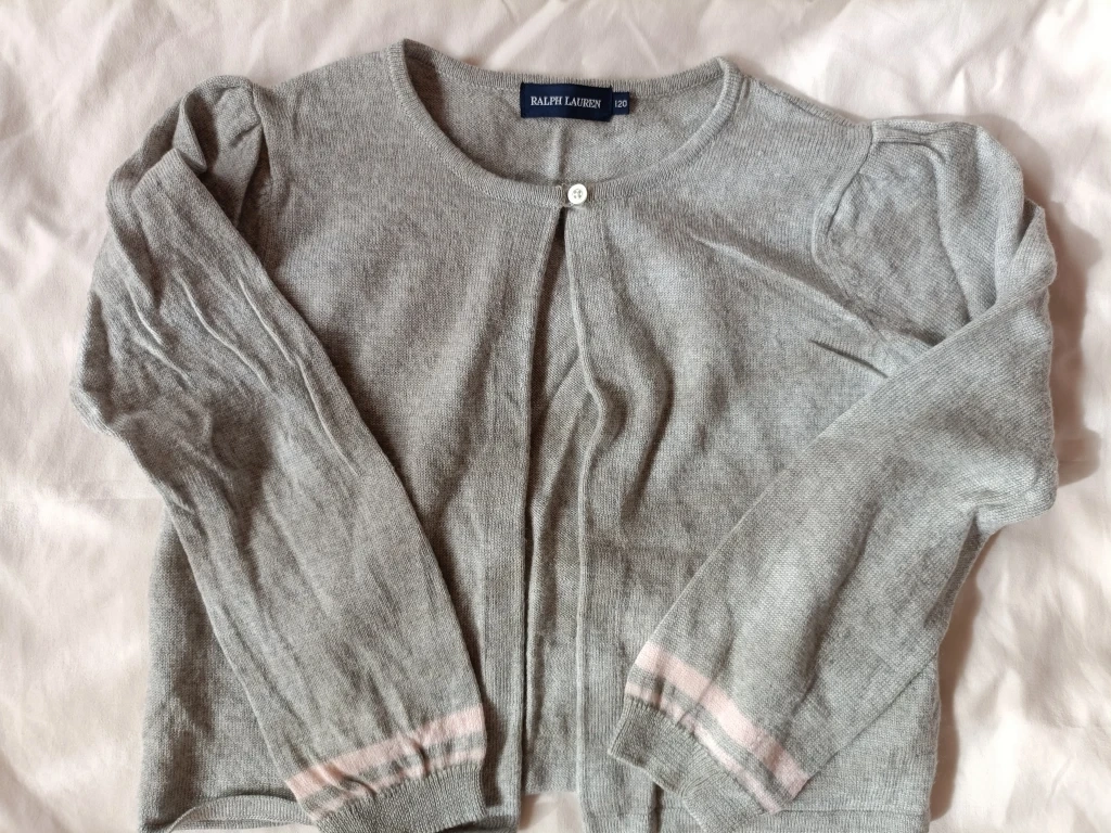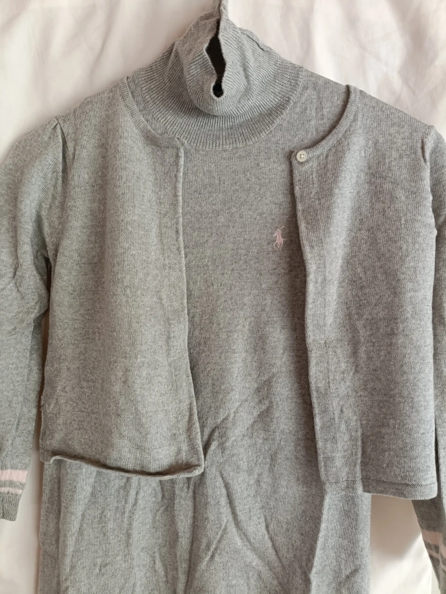ラルフローレンのカーディガンとワンピースのセットアップです。 ・ブランド:ラルフローレン ・色:グレー ・サイズ:120 ・カーディガンにピンクのラインあり ・ワンピースにロゴあり 中古品であることをご了承ください。