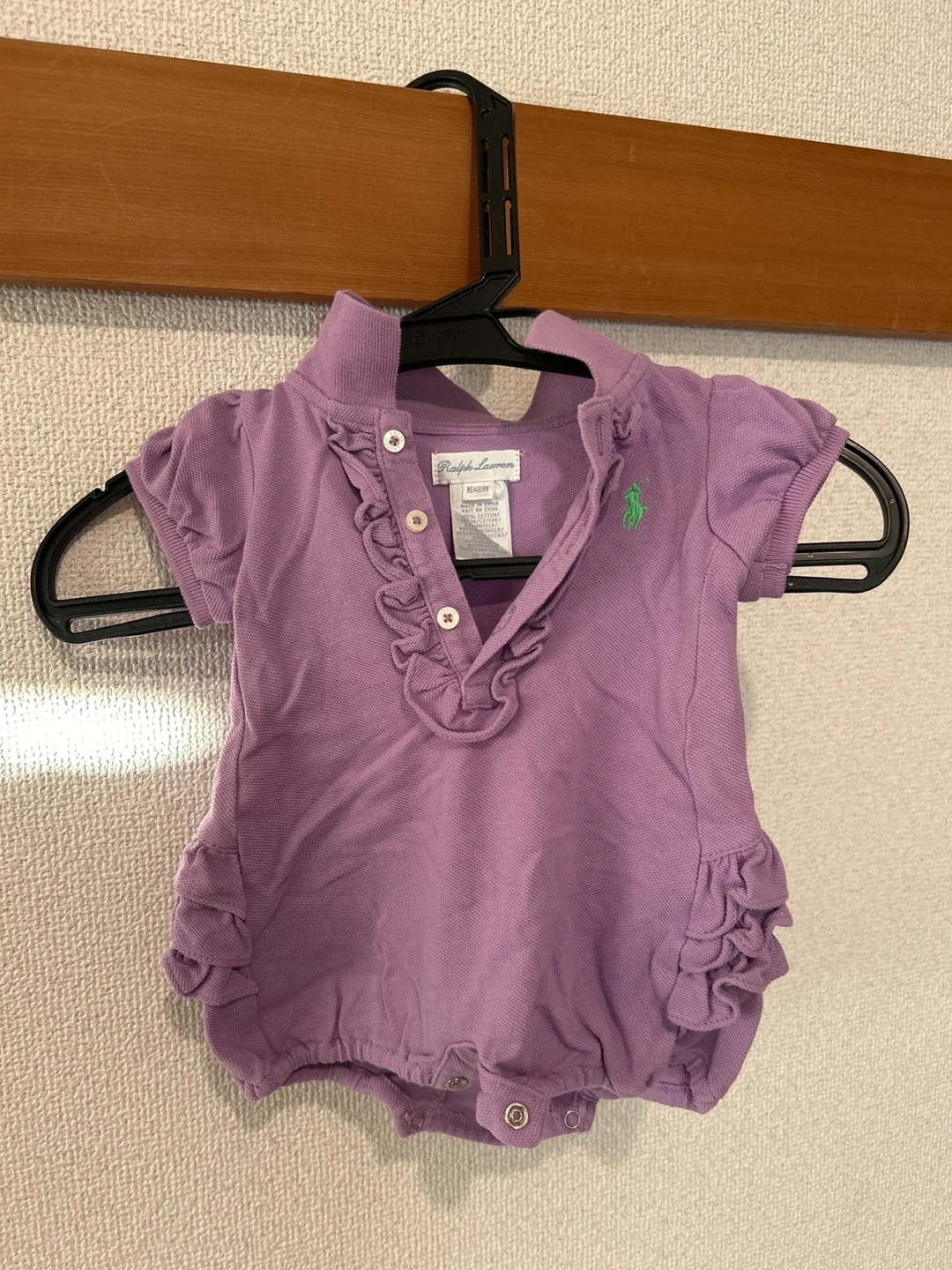 ラルフローレンのロンパースです ・ブランド:ラルフローレン ・カラー:パープル ・状態:使用感少なめ 友達が出産祝いにグアムで買ってきてくれたのですが、子供が少し大きめだったので、ほぼ着れずに終わってしまいました。 ただし、1度試し着をしたり洗濯はしたので、きれいめですが中古品です。ご不明点があればお気軽にご連絡ください