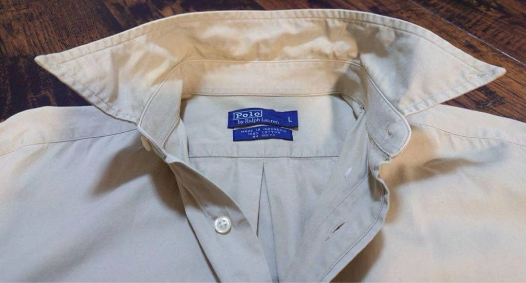 ラルフローレン 刺繍ロゴ 長袖 BDシャツ ベージュ L 5723