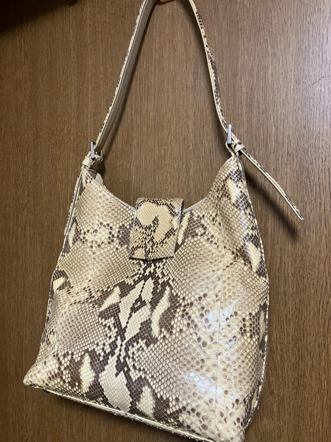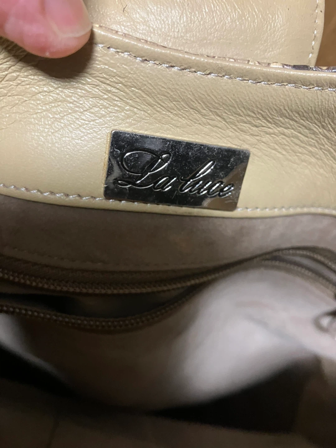 ラルーチェのハンドバッグです。 ・素材:ヘビ革 ・色:ベージュ、ブラウン系 ・ブランド:La luce(ラルーチェ) ・内側にブランドロゴあり ・未使用ですが細かい経年劣化があるかもです 未使用
