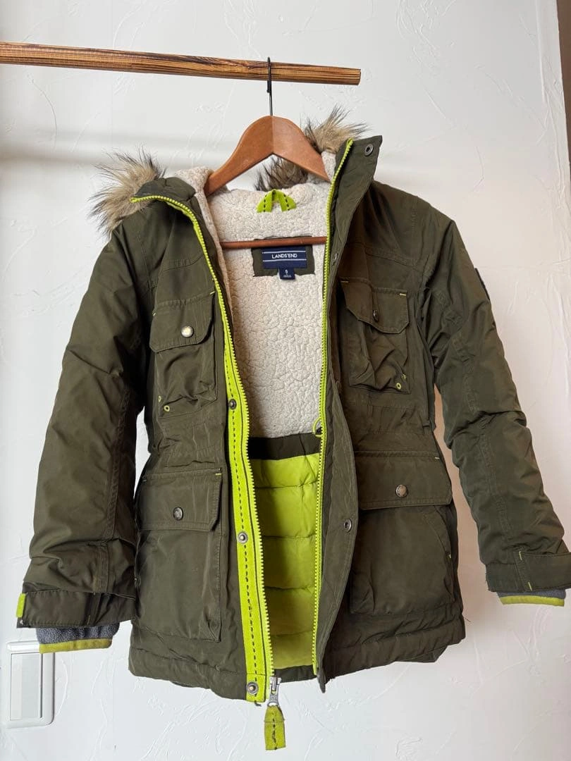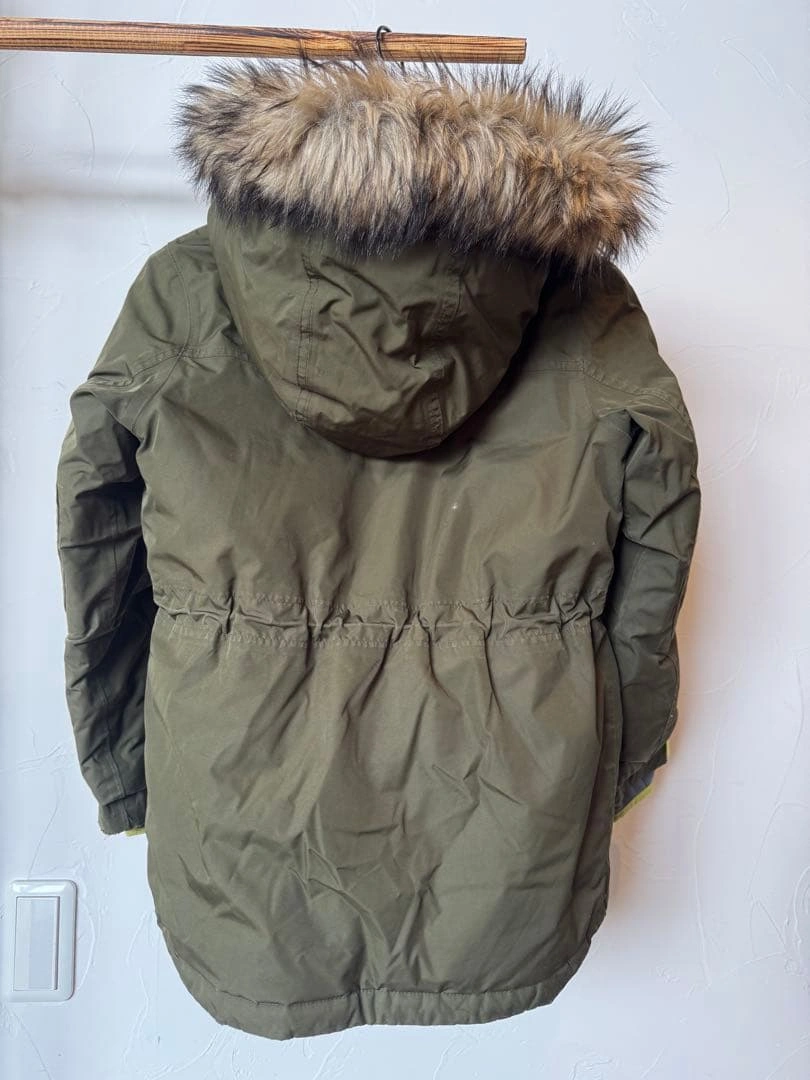 LANDS'END ランズエンド キッズアウターです。 サイズS(8) 約130 (ランズエンドサイト上の説明によると身長約125-132cm) 色 カーキ 生地 表地 ポリエステル 上部身頃裏地 ポリエステル100% 中綿 ダウン80% フェザー20% 子どもが気に入って着ていましたが、サイズアウトしたため出品しま す。 暖かくて冬の寒い時期に役立ちましたが、袖口などにかなりいたみがあるため、スレやいたみを気にせず、防寒や外遊びなどに活用いただける方にお求めいただければと思います。 ー袖口にかなりいたみがあります ー内側に黒ずみがあります ーフロント、ボタンとお腹のあたりにスレがあります ー名前タグに記名はありません 写真をご確認ください。 ご希望の方はお気軽にご連絡ください。