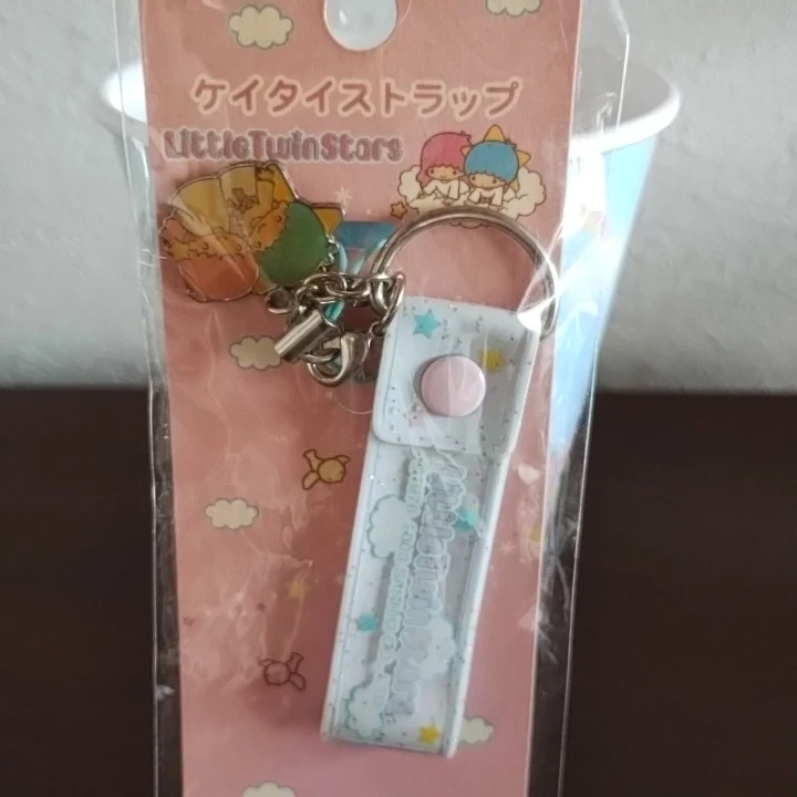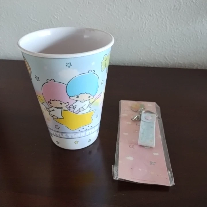 リトルツインスターズのコップとストラップです。 ・コップとストラップのセット ・コップにはLittle Twin Starsのイラスト入り ・ストラップは未使用品