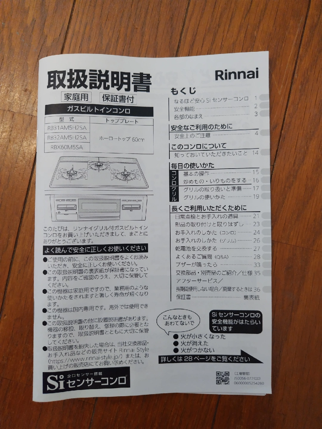 リンナイのガスコンロです 【情報】 リンナイ.ホーロートップ..水無片面焼きグリル しる受けレス構造 全口Siセンサー搭載ビルトインコンロ ●全てのバーナーに温度センサー、消し忘れ消火装置を標準搭載 ●料理が焦げ付きはじめたら自動消火する『焦げ付き消火機能』(全バーナー) ●グリル加熱防止機能 ●しる受けレス構造でお掃除らくらく *従来機種にあった、しる受け皿をなくし、お手入れ性が向上 品番:RB32AM5H2SA-BW(前面シルバー/トップダークグレー) ワイド火力バーナーを左右に搭載 ガス種:都市ガス(12A.13A) *オーブンとは接続ができません 【状態】 2日使用しましたが、きれいです 【付属品】 取扱説明書 中古品であることご了承ください
