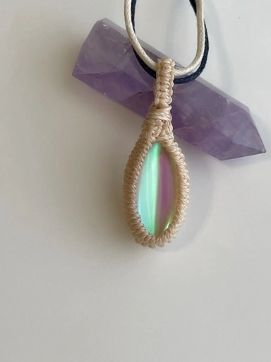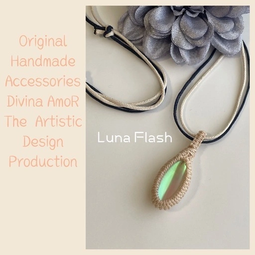 ルナフラッシュマクラメ編みペンダント(ホワイト)です。 ホワイトのマクラメにクリスタルカラーのルナフラッシュの組み合わせ。 紐長さ 85cm 男女兼用 長さ調節タイプ ネックレス紐はワックスコードを2本どり。白と紺色にすることで洋服に合わせる幅を広げました。 ※ペンダント紐は、包装の際になるべく優しくお纏めしておりますが、どうしても若干の纏め癖がついていると思われます。開封後はペンダントを掛けて収納されることをお勧め致します。また、紐のペンダントトップ部に当たる箇所はまだ癖付けしてない為に丸く感じるかと思います。ご使用の際には紐をお好きな具合に癖付けされますと、更に見た目のバランスがとれ馴染みやすくなります。 ☆ルナフラッシュは石の中央に光沢のフィルムを挟んで作る人口石です。内部に光が宿って見えるのが特徴。月を思わせる輝きはとてもエレガントです。ルナフラッシュは心の傷を癒すヒーリングストーンとして優れたエネルギーがあると言われており、新しいチャンスを引き寄せポジティブな光を人生にもたらすきっかけを与えてくれるパワーストーンです。 こちらの商品はハンドメイドアクセサリー「Divina AmoR」が製作しています。 1点1点、全て手作業で心を込めてつくっておりますので同じデザインのもでも少しずつ個体差があり、すべて世界でひとつだけの作品となっております。 使用しているパーツも特に天然石、ビーズを使ったアクセサリーはひと粒ひと粒の型や色に違いがございます。ディヴィナのアクセサリーはそのひと粒の違いもニュアンス、味わいと捉えており、更に1点1点に個性がでるデザインをそのまま楽しんで頂けたら幸いです。 金属アレルギーの方の為にもなるべくアレルギー反応が少なくなるように心がけ製作しておりますが、全てにおいて100%の保証はございません。お買い求めの際はお客様の判断となります。ご理解の上ご了承くださいますようお願い致します。