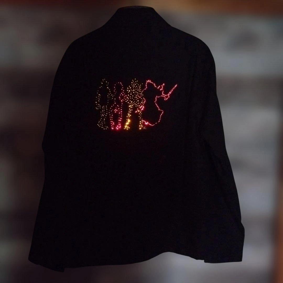 ルパン三世の背面イルミネーション点灯のジャケットです。 ちょっとしたパーティーやイベント等で目立つかと思います。 あまり店頭での販売は見かけたことがなく、おそらく限定かと思われます。 覚えてませんが、何処かのSALEかイベントで買ったのかと思います。 結局 着ないでクロー ゼットに仕舞ってありました ●サイズ:タグ表記 Mサイズ(Lサイズの人でも着られそうです) ●素材:表地 綿100% 裏地 ポリエステル65%,綿35% ●状態:新品未使用ですが、長期保存品です ●その他、注意事項: ・イルミ用電池ボックスは単4電池4本です (プラモデル等作ったことある方ならば、2本用Boxや 単三用に変えることは 容易いと思います) ・細かいデザイン等は画像にて確認ください ・見たところ 経年劣化等は見受けられなかったですが、あくまでも中古品との認識で購入を考えて頂けよるよう お願い致します 不明な点等あれば、お気軽にお問い合わせください。 カラー...ブラック系 肩幅/身幅/袖丈/着丈(素人採寸です) 肩幅...49cm 身幅...59cm 袖丈...62cm 着丈...68cm 汚れ・破れ・臭いなど...なし 受け渡し場所は蓮根駅前でも大丈夫です 日によっては都営三田線沿い巣鴨駅でも。