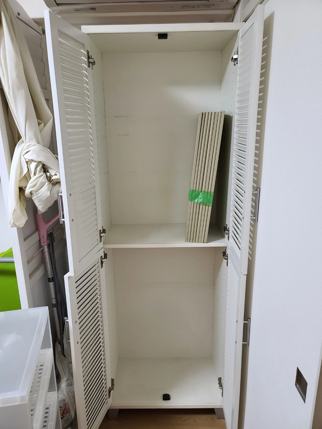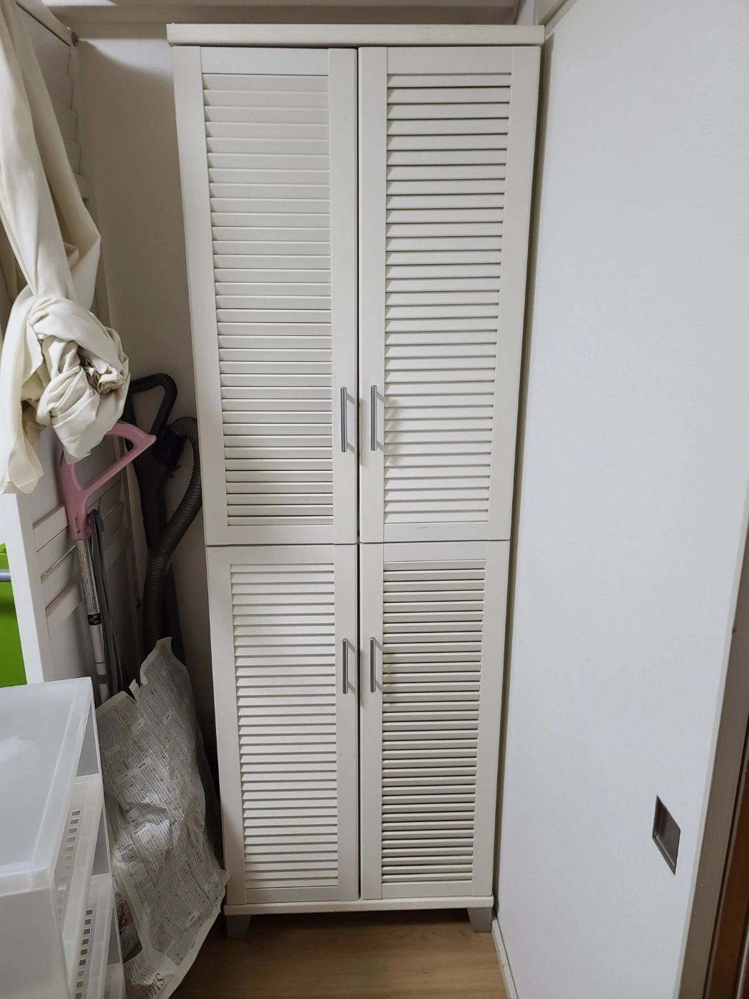 ■27の引っ越しのため ~26日12時までに マンションまでに(四ッ谷三丁目駅と、信濃町駅から5分のところです)、取りに来ていただける方でお願いいたします ■幅60 x 35 x 高さ180cm 一体型、分離できない、 解体できないです、 横に穴があります、使用感あります、写真を確認してください、 ●臭いや湿気を外に逃がすルーバー扉を採用 ●固定棚1枚、可動棚5枚で靴の高さに合わせ調整可能