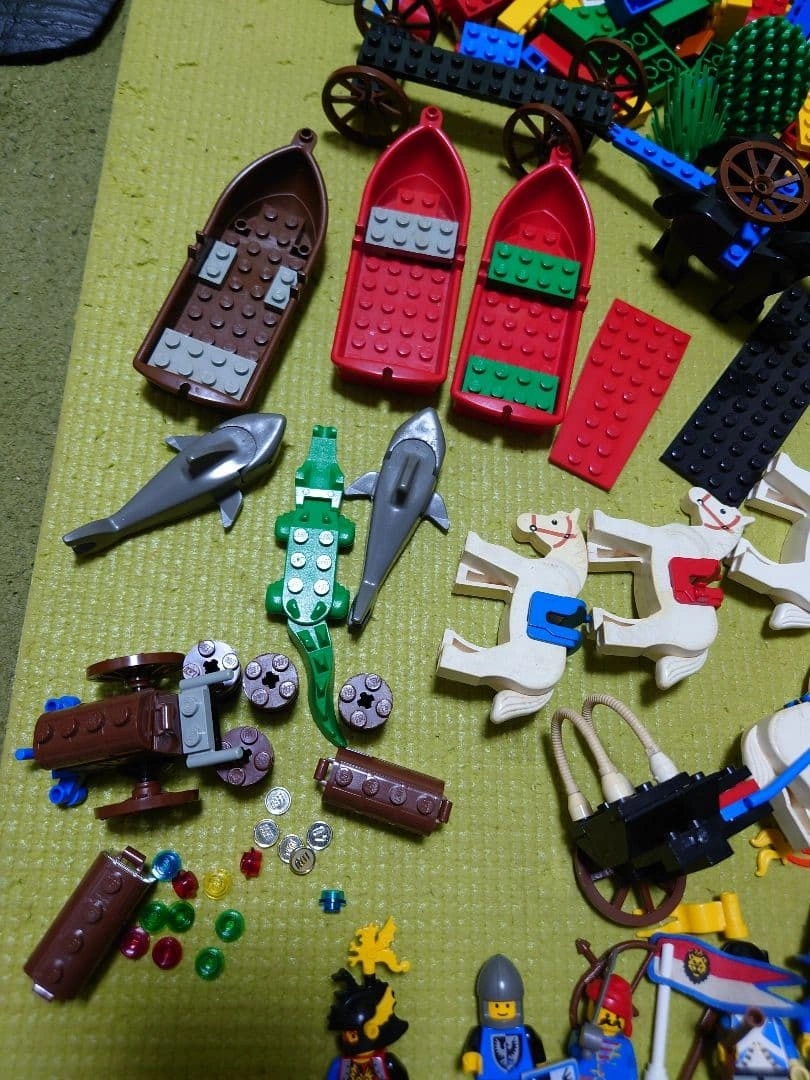 レゴブロック、お城シリーズです。 20-30年前の物になります。 バラ売りした場合の値段はご自身でご確認ください。 スクショは、前の2つが現物、後ろ2つはイメージです。 「なっちゃんのレゴバケツ」に入れてお渡しします。 内容物(恐らく): ドラゴンの騎士 一人乗り用船 海の砦 森の隠れ家 魔法使いのお家 王様の馬車 ご希望の方はお気軽にご連絡ください。