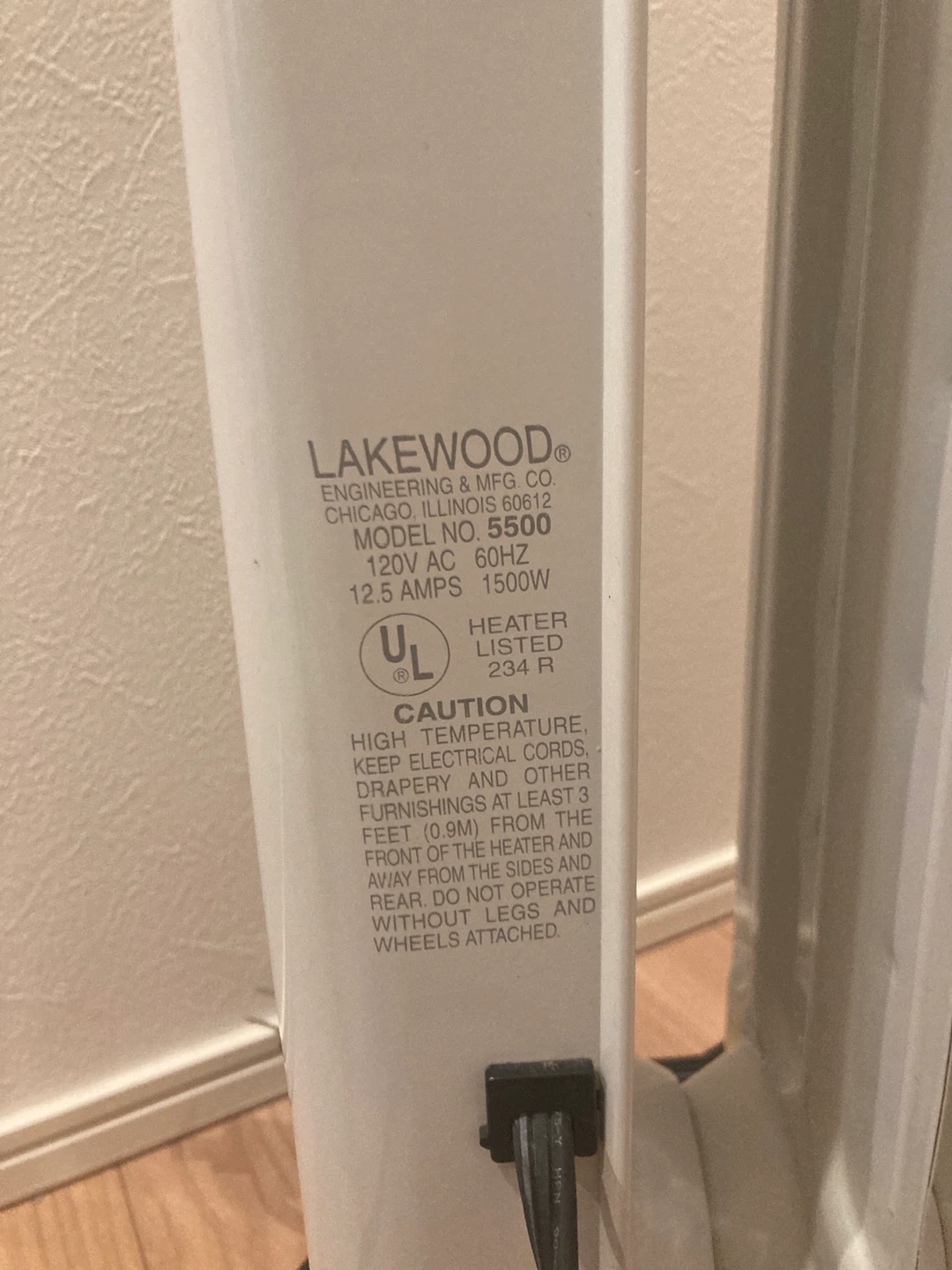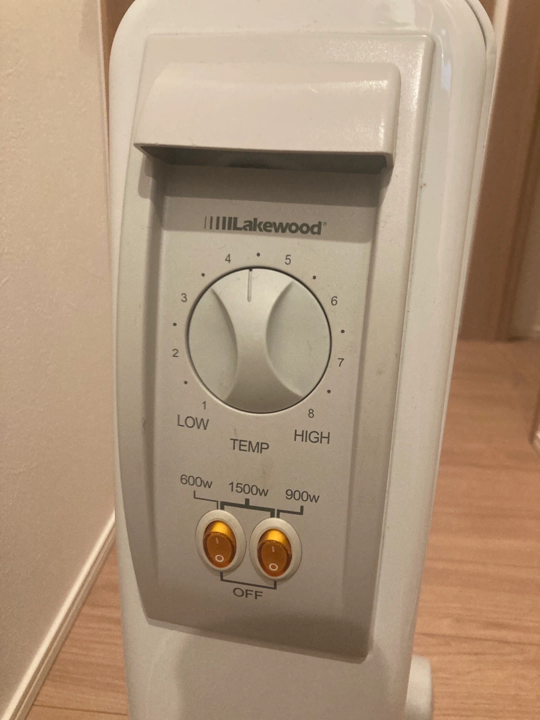 LAKEWOODレイクウッド のオイルヒーターです(^^) どなたかお使いいただける方にお譲りします。 600W、900W、1500Wに切り替えできます。 調べたところ、1500Wで10畳〜13畳くらいの暖房能力だそうです。 ちなみに我が家では6畳の部屋で600Wで使用してました。 比較的キレイな方かとは思いますが、実物を見てから購入するかどうか決めていただいても構いません。 動作確認済みです。 杉並区の高円寺 学園付近まで取りに来ていただける方よろしくお願いします。 【情報】 ブランド:レイクウッド 型番:5500 【状態】 使用感はありますが、目立つキズはありません。 中古品であることご了承ください