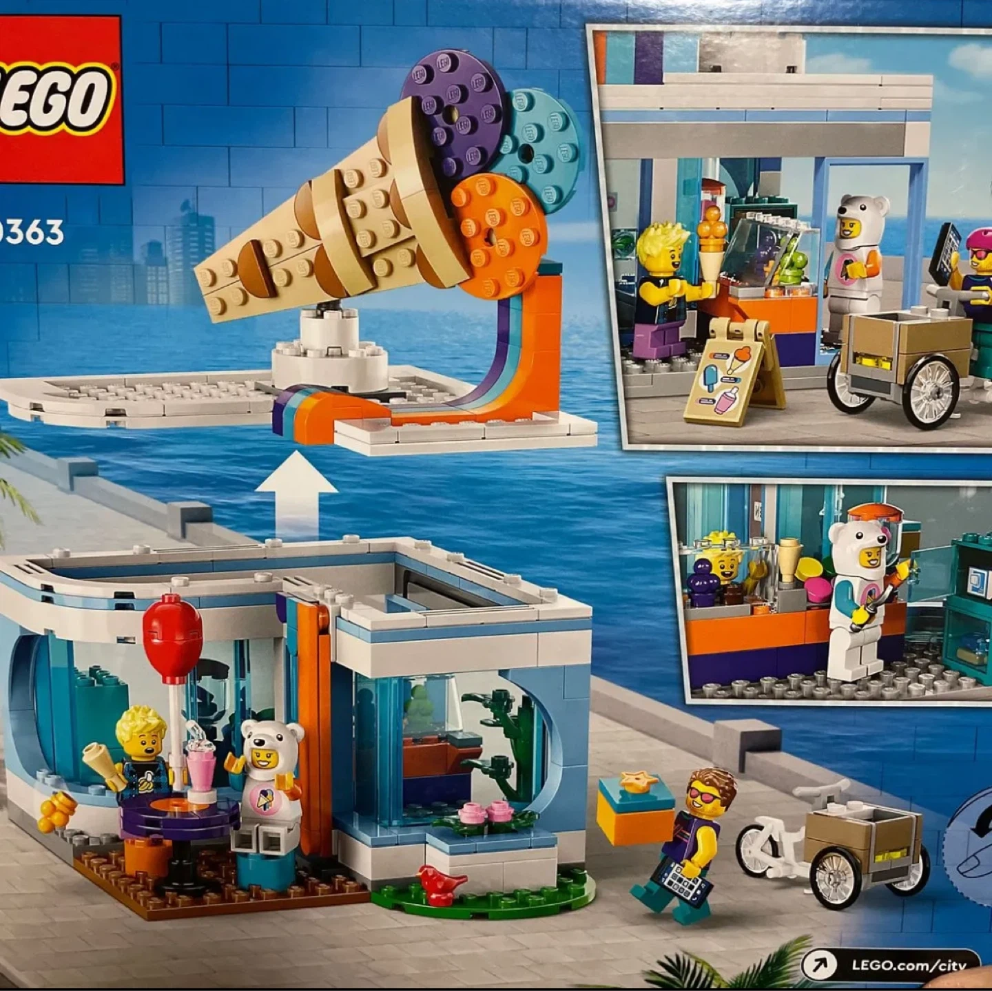 レゴシティのアイスクリームショップです。 【情報】 ブランド:レゴ 商品名:アイスクリームショップ 型番:60363 新品未使用 ブランド:LEGO 数量限定 レゴ City アイスクリームパーラー 60363 スイーツが大好きなお子さまの目を輝かせるアイスクリームパーラーのプレイセットです。 楽しい組み立て遊び 組み立てからアイスクリーム屋さんごっこまで、存分にお楽しみいただけます。(対象年齢:6才以上) レゴシティ アイスクリームパーラー まさにリアル! カウンターはもちろん、ブレンダーや冷凍庫もある楽しいアイスクリームパーラーを再現できます。 夏休み気分で遊ぼう 屋外のテラス席で食べるアイスクリームはサイコ〜! デリバリーサービス カート付き3輪バイクで、デリバリーサービスもおまかせ!