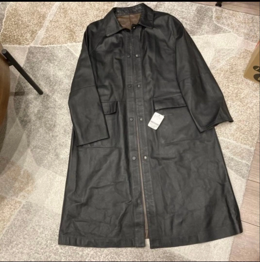 ご覧いただきありがとうございます。 レザー風ロングコート(ステンカラーコート)です。 ※タグは取れてますが新品です。 ■ 商品特徴 ・上品なレザー調素材で高級感あり ・ロング丈でシルエットが綺麗 ・前開きはボタン+スナップ仕様 ・どんなコーデにも合わせやすいデザイン ・軽めのレザー風素材で扱いやすい ・7ARサイズ(細身〜標準の方向け) ・カラー:ネイビー/ダークブラウン(タグ表記)