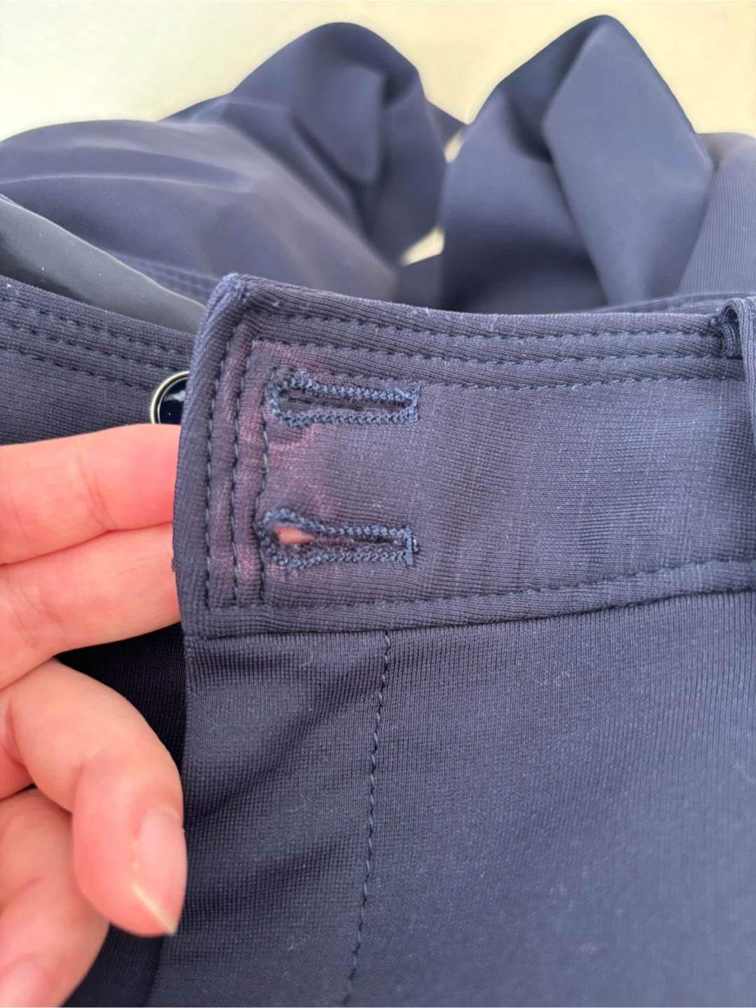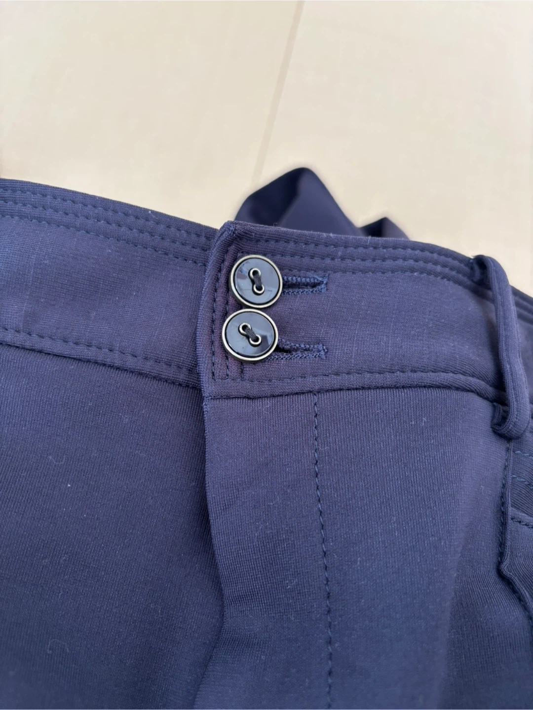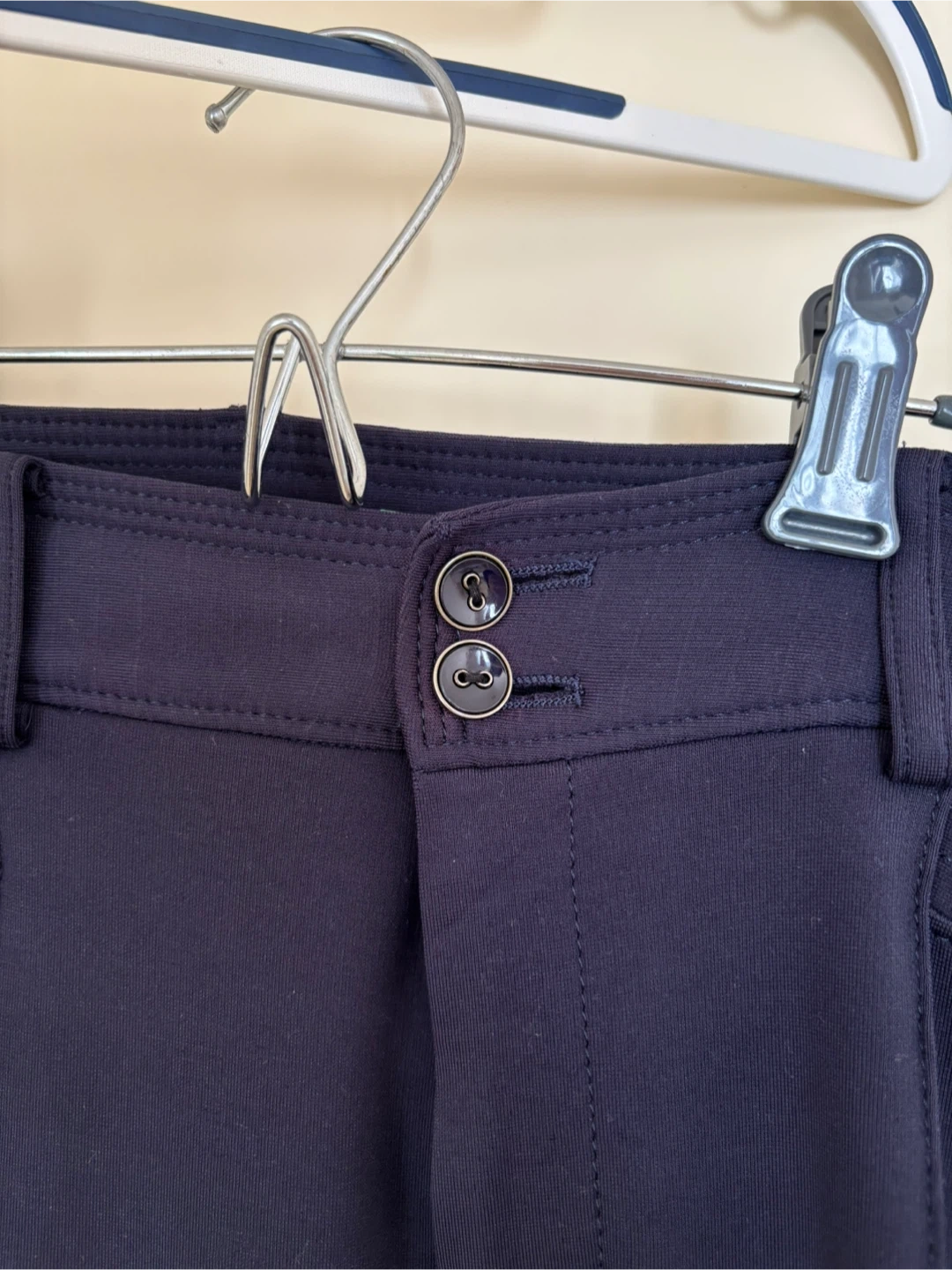 パーフェクトスーツファクトリーのパンツです。 ・ウエスト:67cm ・ヒップ:91cm ・色:ネイビー ・サイズ:11 ・素材:テンセル70%、ナイロン25% ネイビーのスラックス、2つボタン、4つポケット付き。 裾まで裏地付き シワにならない厚手の生地です。 - 色: ネイビー - スタイル: スラックス - ボタンの数: 2つ - ポケットの数: 4つ ボタン部分生地の変色が見られますが、ボタンを閉めると隠れます。写真を参照ください。