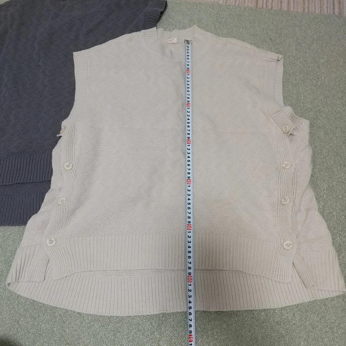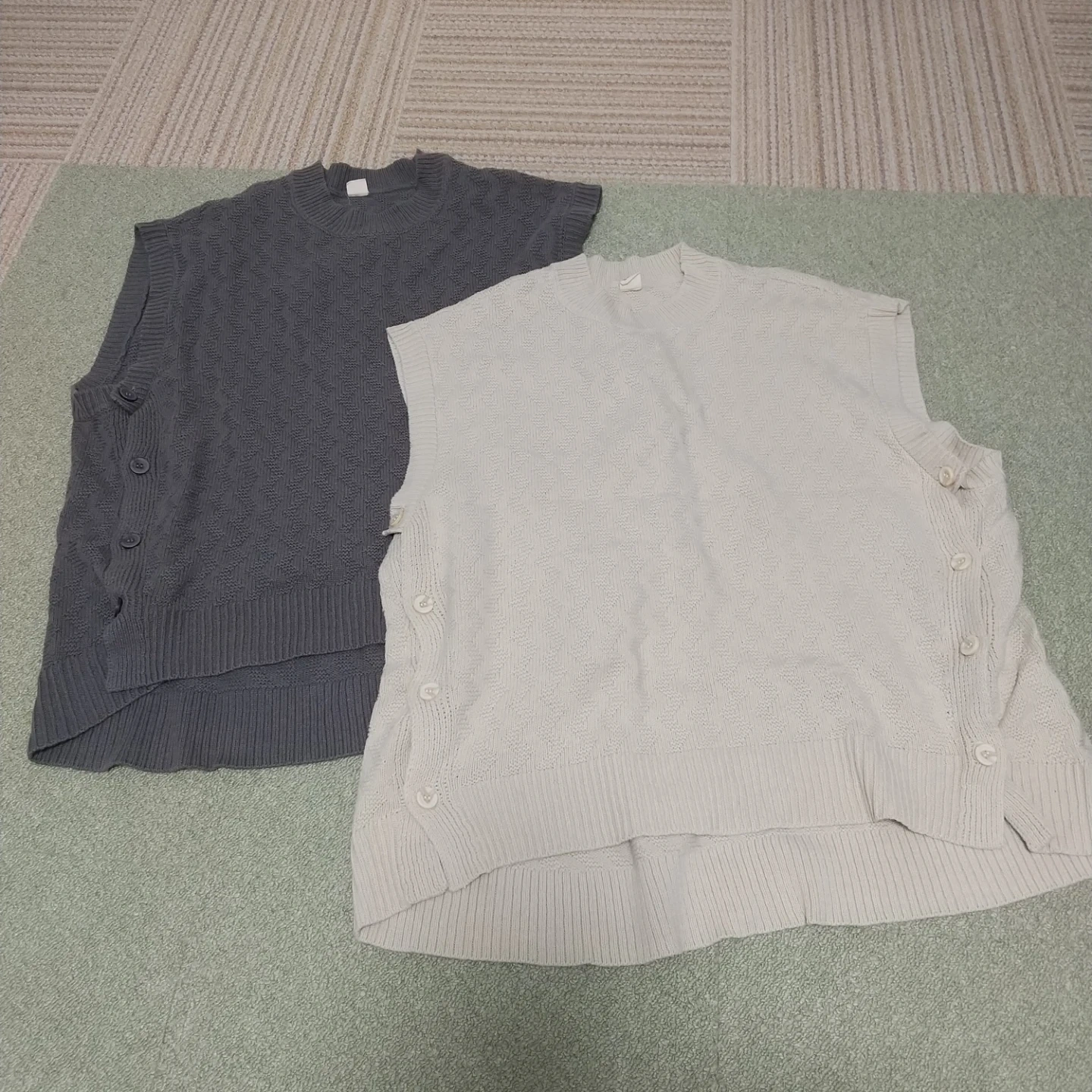 サイドボタンが可愛いニットベスト。 ジグザグな網目模様もおしゃれです。 アイボリーとチャコールグレー とても合わせやすいお色です! かなりゆったりした作りですので、 シャツ、ブラウス、ワンピースなど、なんでも重ね着できるかと思います。 フリーサイズ。(着丈、身幅の実寸は画像にて。) 以前にフリマサイトで譲っていただきましたが、私には似合わなかったのでどなたかぜひ!