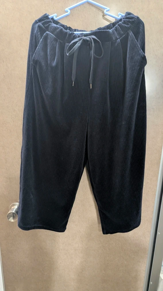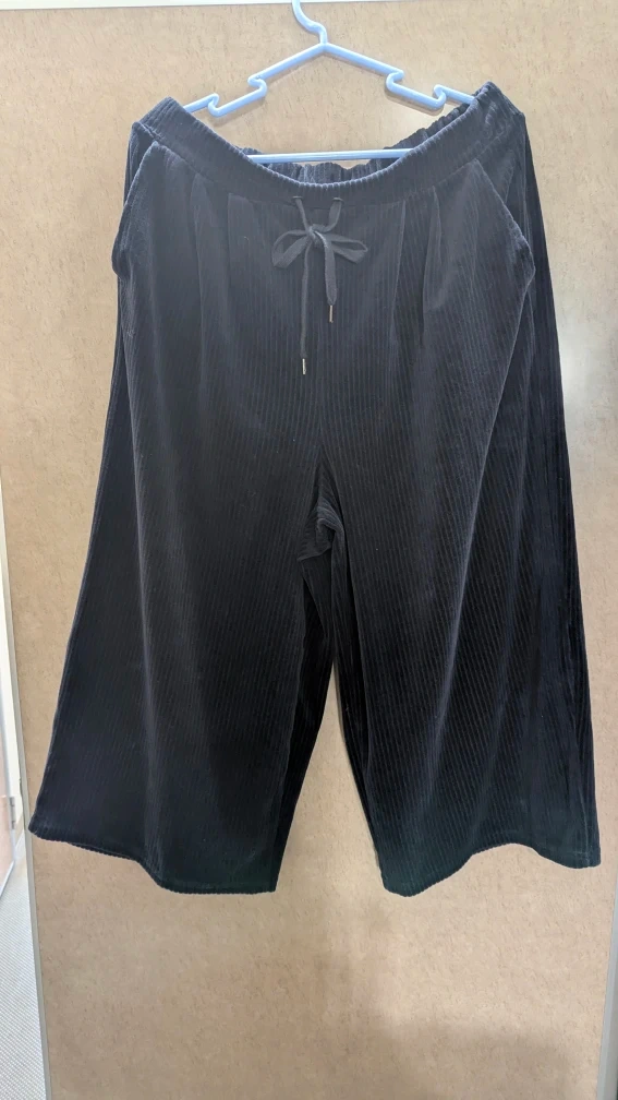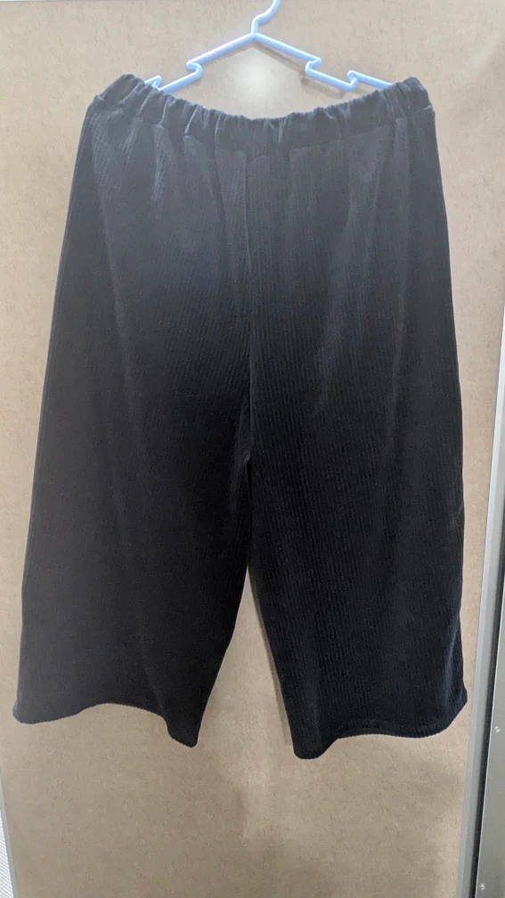 レディースワイドパンツです。キュロット、ガウチョパンツのように少し丈が短めです。 ハイソックス、タイツ、と組み合わせて冬にとても暖かく着られます。 ・サイズ:LL ・ウエスト:77~85cm ・総丈(ウエスト後ろから裾まで): 82cm ・素材:綿63%、ポリエステル37% ・色:紺、ネイビー ・状態:使用感少なめ 中古品であることご了承ください。