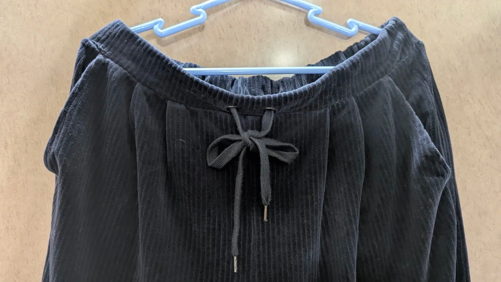 レディース ワイドパンツ LL ネイビー コーデュロイ